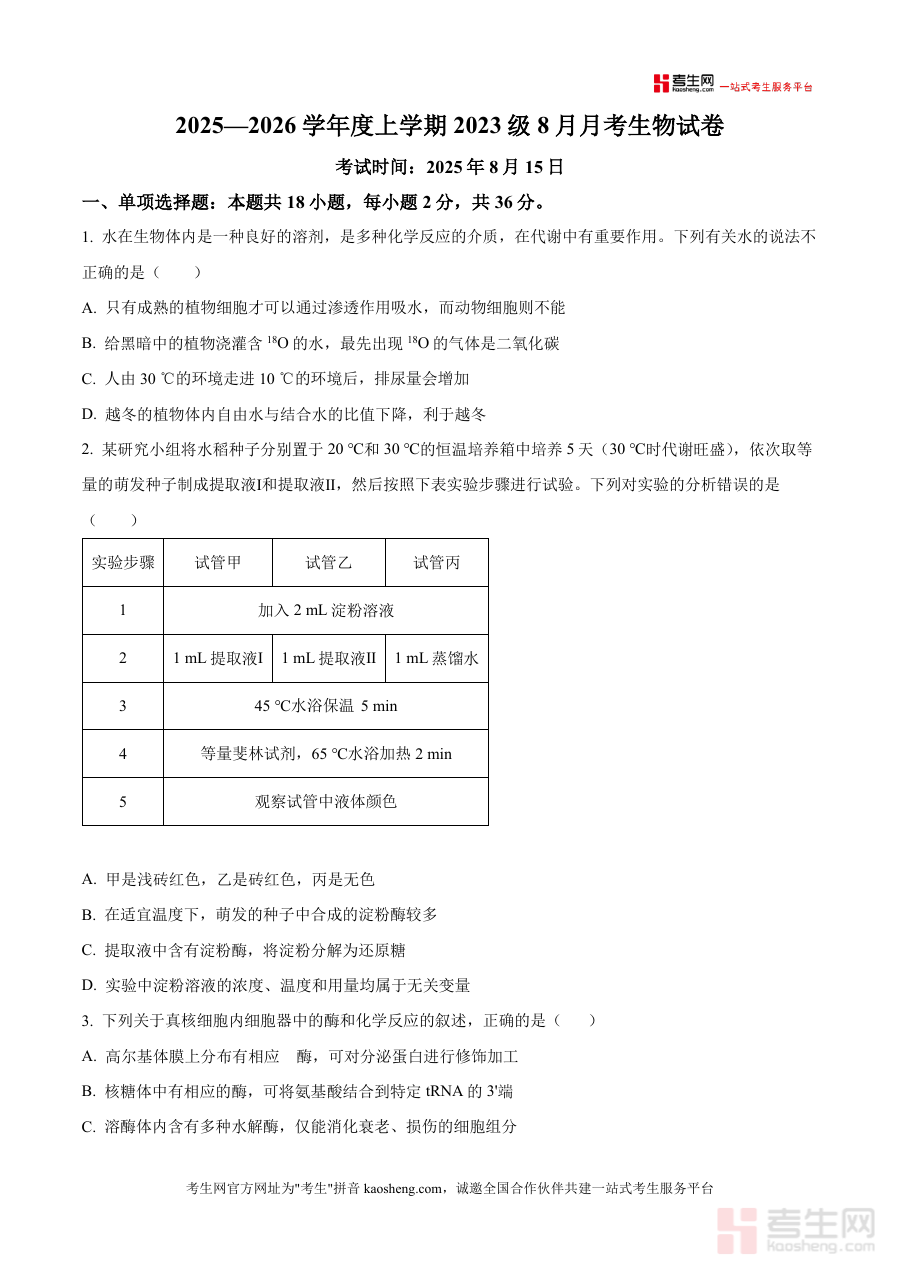 精品解析湖北省荆州市沙市区湖北省沙市中学20252。026学年高三上学期8月月考生物试题原卷版docx。是一份针对特定阶段考试的备考资料核心围绕考试的时间。地区与用途展开为考生提供阶段检测与备考参考这份资料。的核心用途在于帮助对应年级的学生明确学习重点通过阶。段考试诊断学情为后。