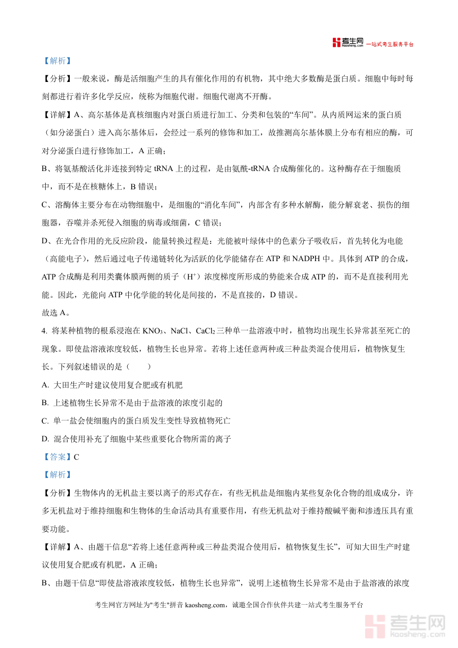 该资料主要用于高三学生完成本次月考后,借助解析内容了解自身生物学科阶段性学习状况,明确考试考察方向与知识掌握薄弱点;同时为生物学科教师提供本次考试详细解析参考,辅助教师开展教学效果评估及后续教学计划调整,助力教学针对性提升,不包含超出本次考试范围额外数据或分析结论。
