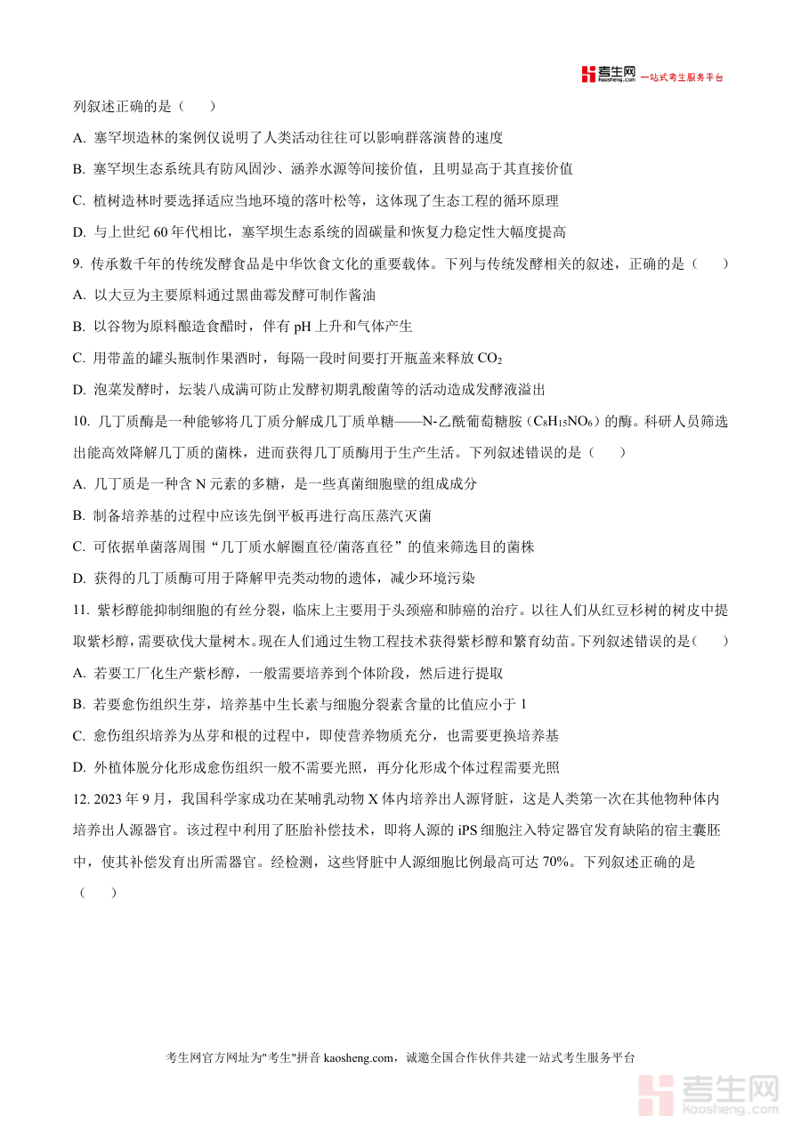 适用人群为湖北省高中名校联盟内高三学生及其他同类高三生物学习者;生物学科教师及备考辅导人员也可将其作为阶段检测参考资料使用;该资料作为高三初期联合测评原卷版能有效反映阶段学习成果及检测目标定位;对提升备考针对性具有一定参考价值;需结合实际学习情况合理运用以发挥其最大效用;助力高三学生在生物学科备考初期明确方向并做好规划安排;为后续学习提供清晰的数据参考与准备依据。