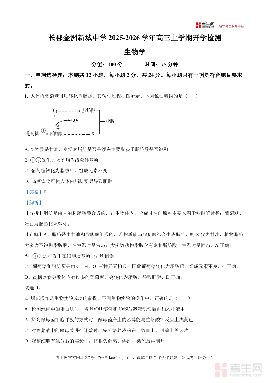 精品解析湖南省长沙市宁乡市长郡金洲新城中学2025。2026学年高三上学期开学检测生物试卷解析版doc。x是一份针对特定阶段考试的备考资料核心围绕考试的时。间地区与用途展开为考生提供阶段检测与备考参考这份资。料的核心用途在于帮助对应年级的学生明确学习重点通过。阶段考试诊断学情为后。