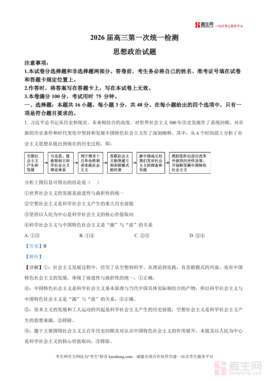 该资料适用人群主要为2026届内蒙古自治区赤峰市高三年级学生,以及从事高三政治学科教学的教师或备考辅导人员,作为高三上学期首次统一检测对应的解析类资料,它能有效支持阶段学习效果评估,帮助使用者更好适应本地统一检测形式与要求,为后续系统复习与备考奠定基础,具有较强的针对性与实用性。