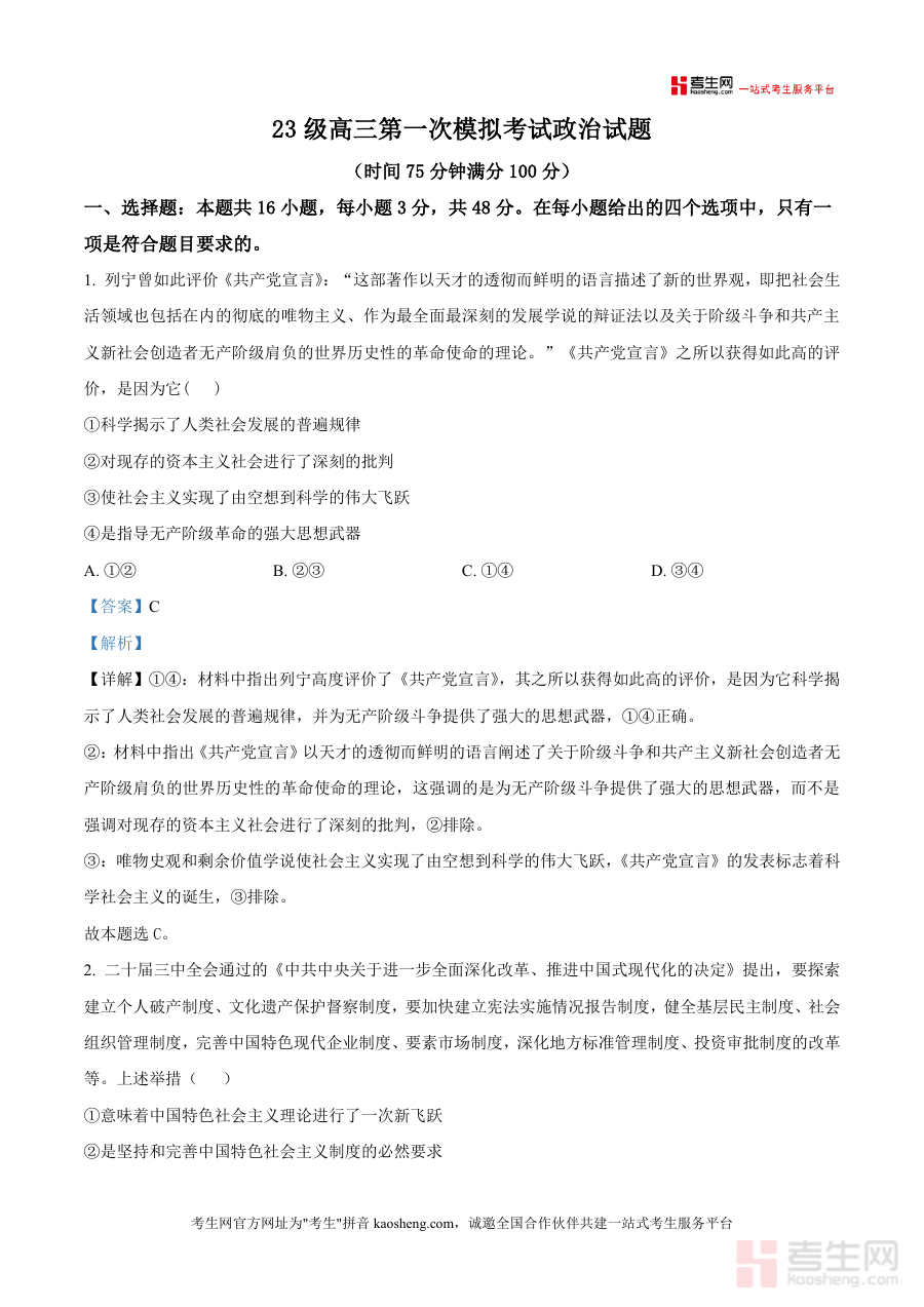 精品解析2026届四川省仁寿第一中学校南校区高三上。学期一模政治试题解析版docx是一份针对特定阶段考。试的备考资料核心围绕考试的时间地区与用途展开为考生。提供阶段检测与备考参考这份资料的核心用途在于帮助对。应年级的学生明确学习重点通过阶段考试诊断学情为后续。复习规划提供依据无论是开学摸底阶段检测。