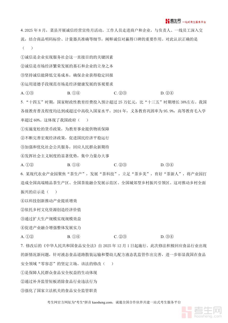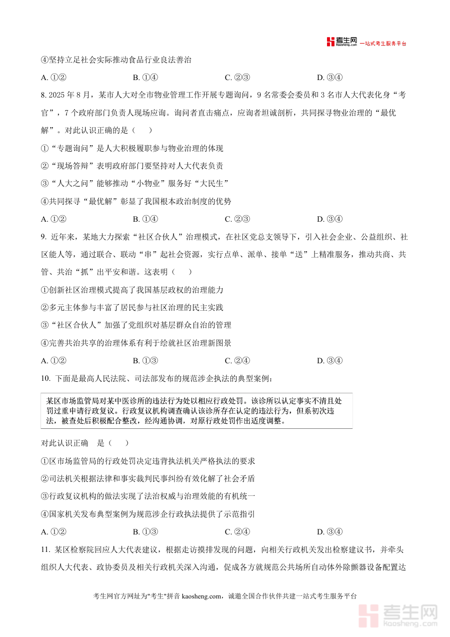 这份资料的核心用途在于为使用者提供本次联合诊断考试政治科目的原卷内容依据,帮助高三学生及教学人员全面了解该次诊断考试政治科目的试卷构成情况,包括题型设置、题量分布等基础信息,为高三上学期初期阶段的学情诊断工作及后续备考规划提供关键参考,辅助使用者明确该阶段检测中政治学科的呈现形式与考查方向,支持针对性复习准备工作高效开展,确保备考方向与考试要求保持一致,提升备考效率。