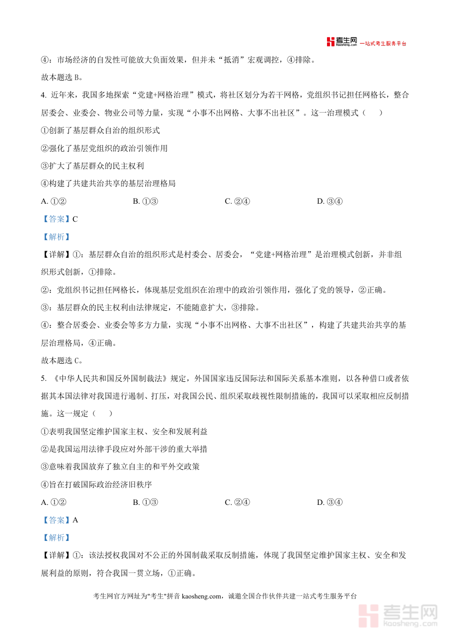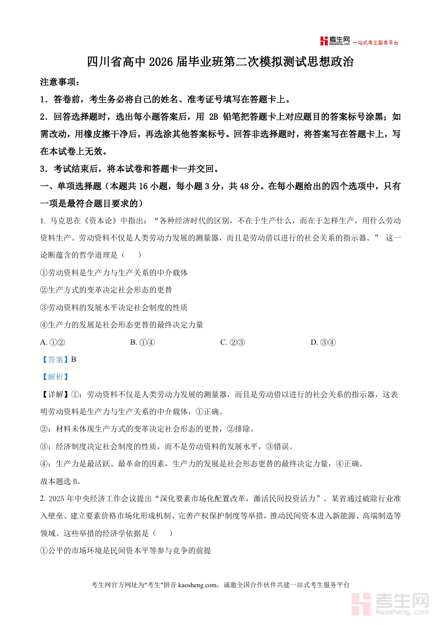 这份资料核心用途在于辅助高三学生完成二模阶段自我学习效果评估与巩固,帮助考生掌握模拟测试题型设置及答题规范,同时通过解析部分理解试题考查逻辑及解题思路;此外,它也可为思想政治学科教师提供教学参考依据,助力教师精准把握阶段教学重点,优化教学方案与辅导策略,提升教学针对性与有效性.