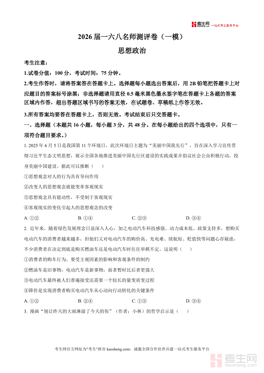精品解析2026届安徽省合肥一六八中学高三上学期名。师测评一模政治试题原卷版docx是一份针对特定阶段。考试的备考资料核心围绕考试的时间地区与用途展开为考。生提供阶段检测与备考参考这份资料的核心用途在于帮助。对应年级的学生明确学习重点通过阶段考试诊断学情为后。续复习规划提供依据无论是开学摸底阶段检测。