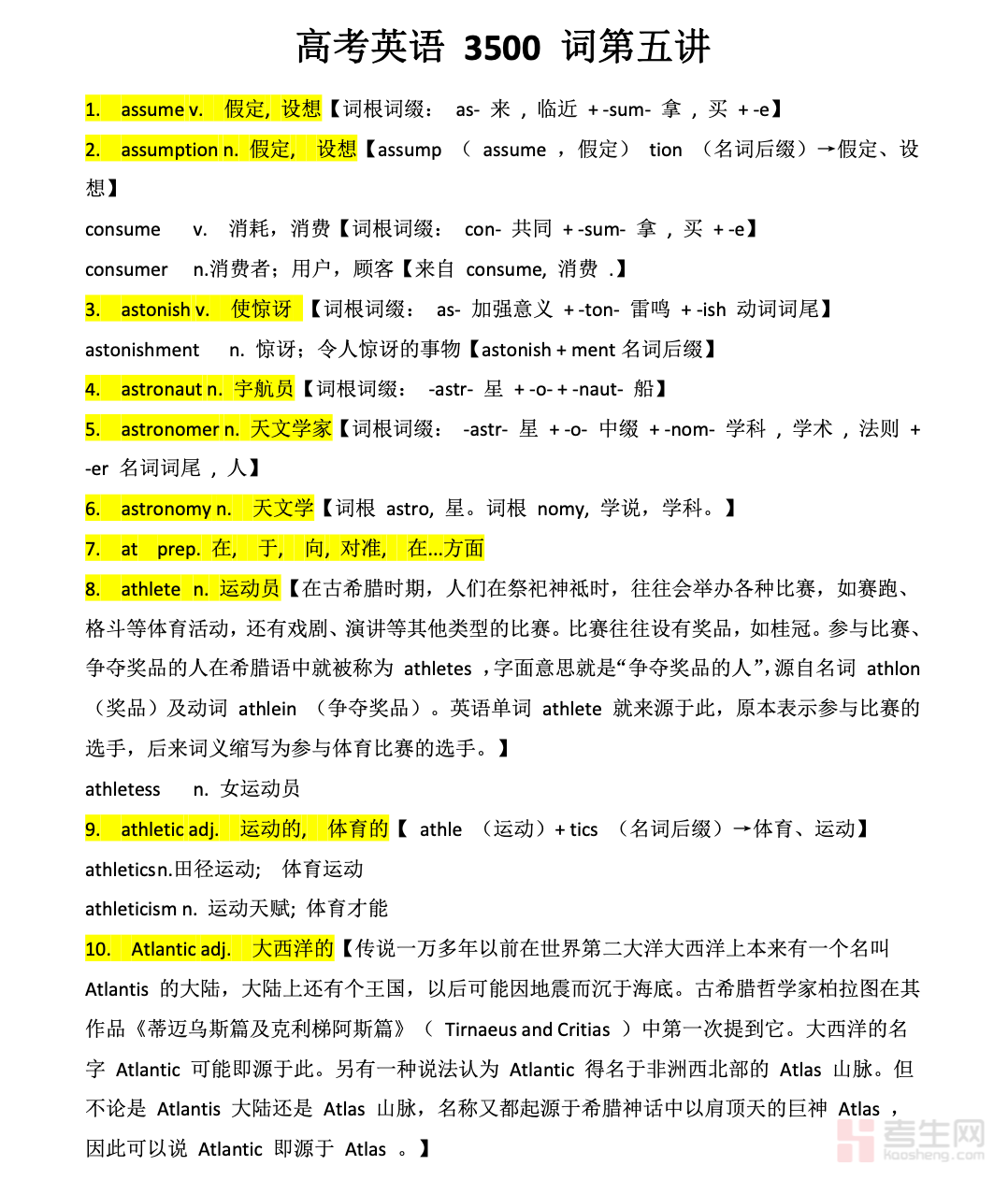 高考英语 3500 词第五讲紧扣高考英语核心备考需求,聚焦 3500 词体系中第五讲重点词汇、高频派生词、固定搭配,兼顾词汇记忆与语境运用,打破机械背诵模式,结合高考真题例句拆解词汇用法,梳理易混词辨析、词性转换及常见易错点。内容贴合高考命题趋势,针对性突破词汇记忆难点,帮助考生高效掌握本讲核心词汇,夯实英语词汇基础,提升词汇运用与解题能力,适配高考英语完形填空、阅读理解、书面表达等题型备考,助力考生稳步推进 3500 词背诵计划,为高考英语冲刺筑牢词汇根基。请添加微信 18617049513 进专属群,获取更多免费资源!