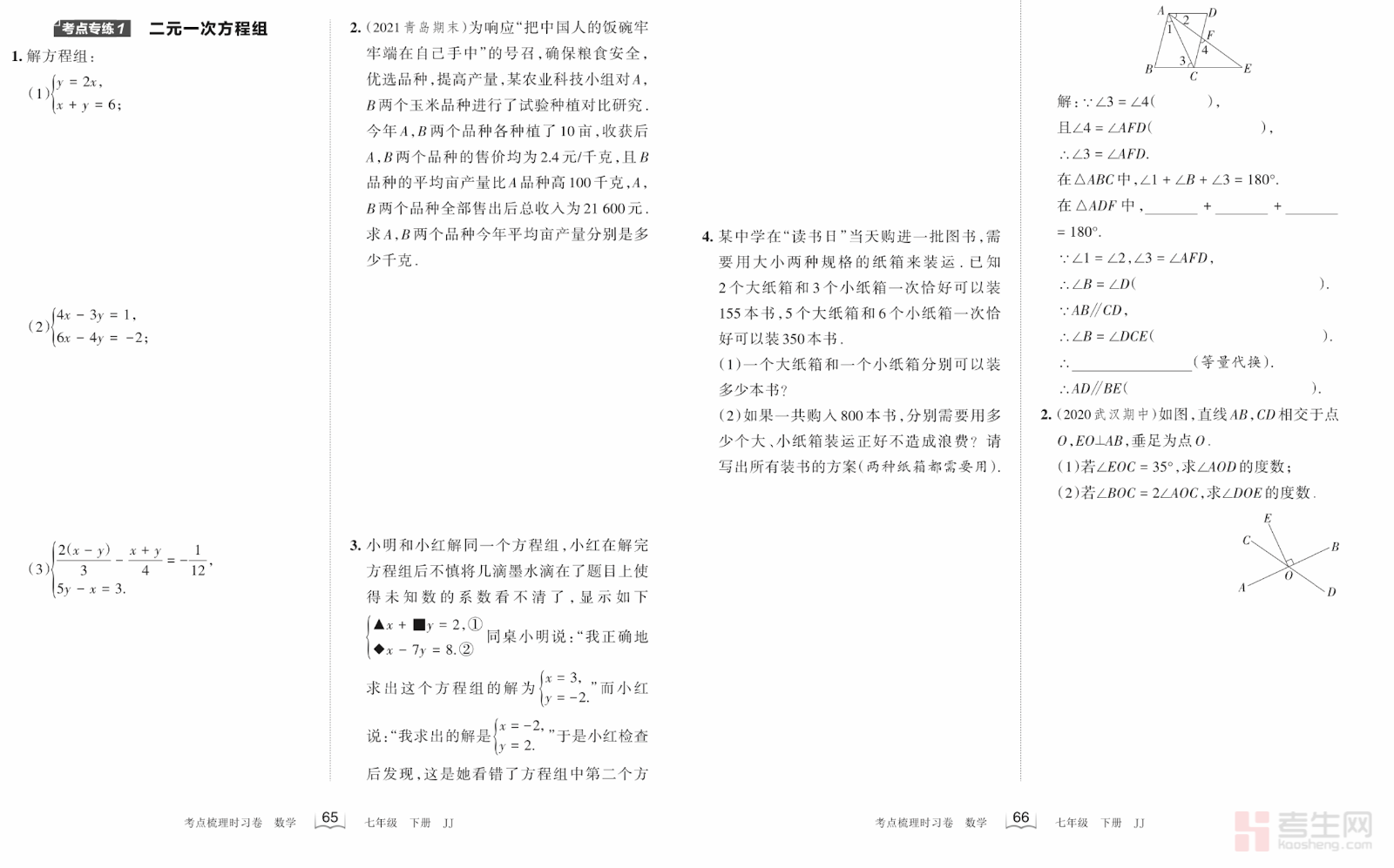 王朝霞 初中数学 专项 2 解答题(一)(冀教版)(七年级下册)(含答案解析)严格同步冀教版七年级下册数学教材,聚焦解答题规范答题、步骤书写、核心考点、解题思路,覆盖整式运算、因式分解、二元一次方程组、一元一次不等式、几何证明与计算等重点内容。题目贴合期中期末考试题型,难度梯度合理,注重逻辑推理、过程规范、得分要点训练,每道题均配有详细答案解析,清晰展示解题步骤与方法技巧,帮助学生掌握解答题得分规律,减少步骤失分。适合课后巩固、专项突破、单元复习与考前强化训练,快速提升七年级学生数学解答题能力与应试得分水平。请添加微信 18617049513 进专属群,获取更多免费资源!