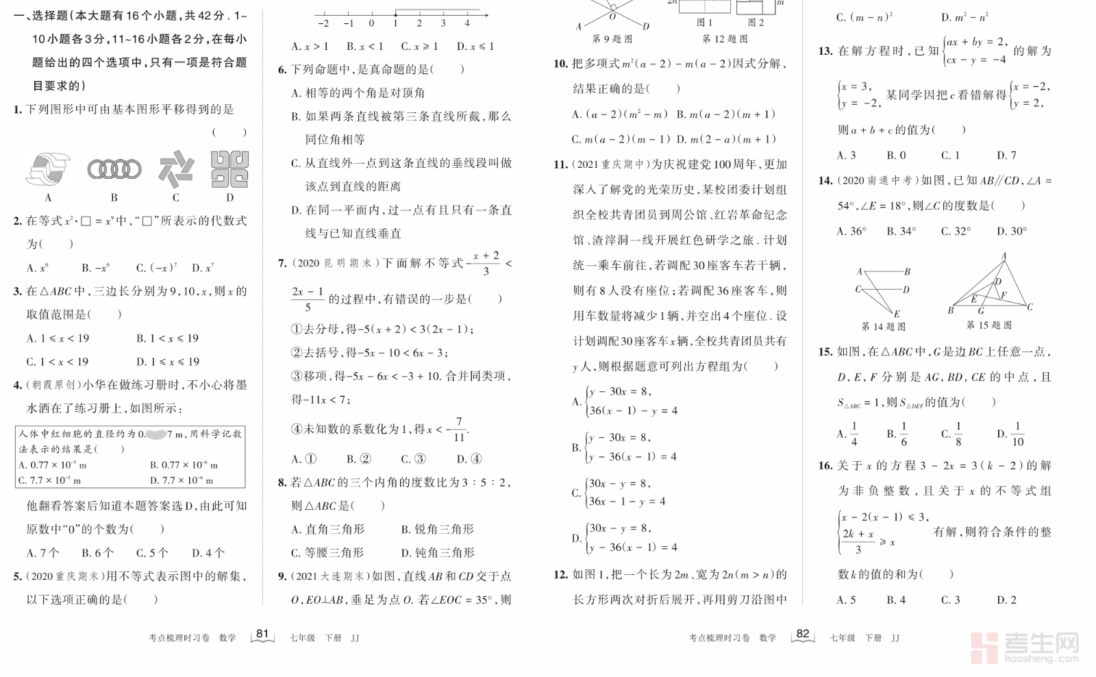 王朝霞 初中数学 期末学情诊断卷(基础卷)(冀教版)(七年级下册)(含答案解析)依据冀教版七年级下册教材与期末考试大纲精心编写,全面覆盖整式运算、因式分解、相交线与平行线、二元一次方程组、不等式与不等式组、三角形等期末全册核心考点。试卷侧重基础知识、基本计算、基础几何推理,题型标准、难度适中,贴合期末基础检测要求,旨在帮助学生巩固基础、排查知识漏洞、规范答题步骤。每道试题均配有详细答案解析,点明考点、梳理解题思路、标注易错点,让学生自查自纠更高效。适合期末基础复习、课堂检测、考前自测与学情诊断,夯实数学基础,提升基础题得分率,为期末考试做好充分准备。请添加微信 18617049513 进专属群,获取更多免费资源!