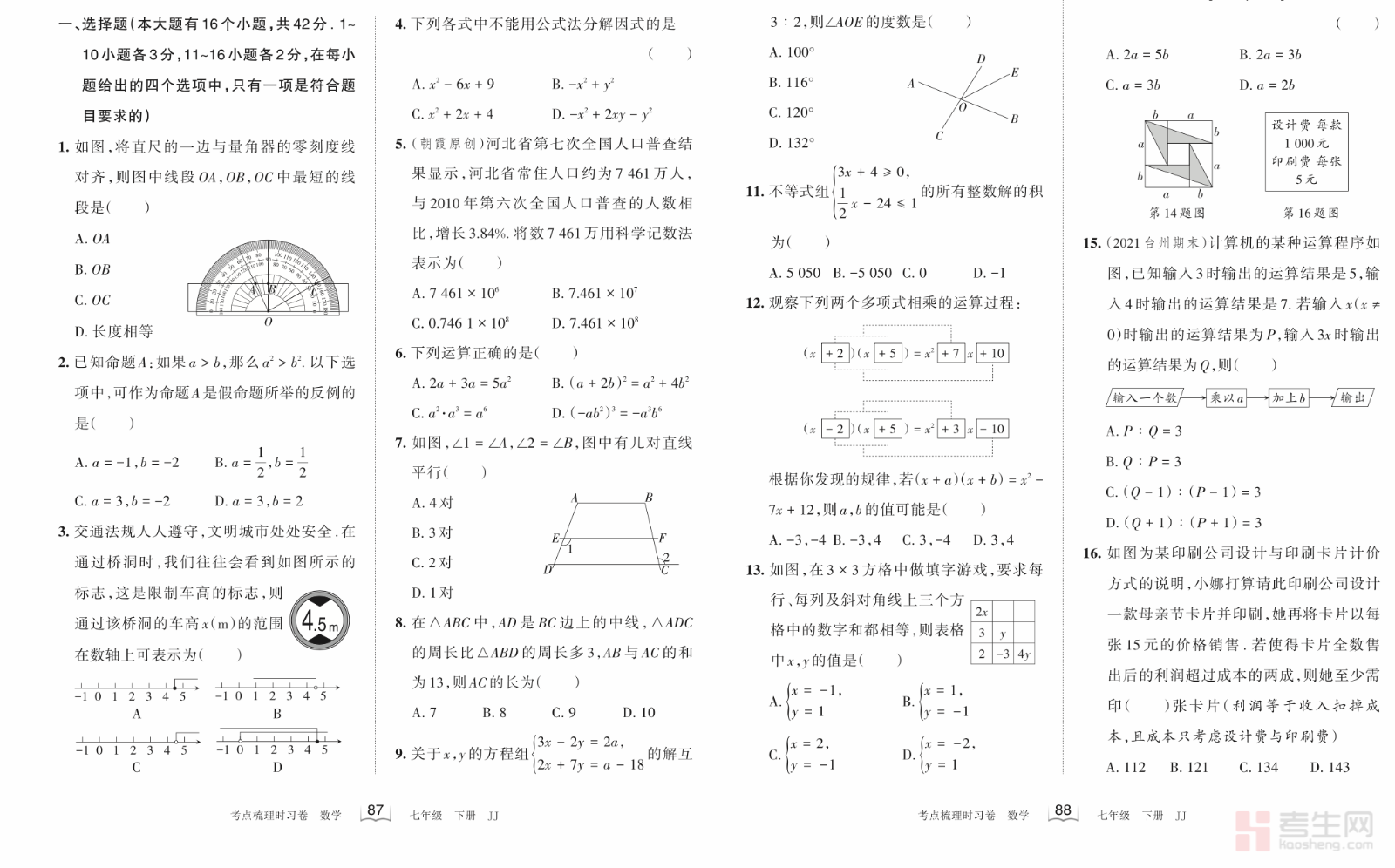 王朝霞 初中数学 期末学情诊断卷(提优卷)(冀教版)(七年级下册)(含答案解析)紧扣冀教版七年级下册教材与期末考试命题趋势,全面覆盖整式乘除、因式分解、二元一次方程组、一元一次不等式、几何推理、三角形综合等期末重难点知识。试卷侧重综合应用、拓展提优、压轴题型、解题思维,难度适中偏上,题型灵活新颖,贴合期末高分冲刺需求,注重培养学生知识迁移、逻辑推理、规范答题能力。每道题均配有详细答案解析,精准点拨思路、归纳方法技巧、剖析易错根源,助力学生突破薄弱环节。适合期末拔高训练、考前冲刺、查漏补缺与高分突破,快速提升期末应试能力与数学综合水平。请添加微信 18617049513 进专属群,获取更多免费资源!