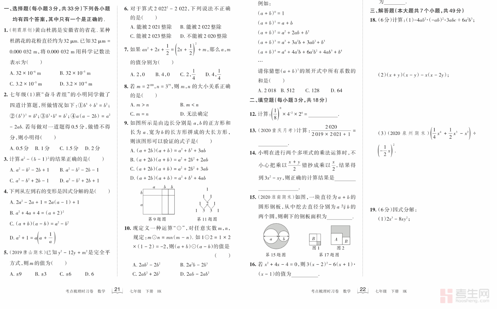王朝霞 初中数学 第八章 过关检测卷(沪科版)(七年级下册)(含答案解析)严格依据沪科版七年级下册数学教材与课程标准编写,全面覆盖多项式乘除、乘法公式、因式分解、提公因式法、公式法等核心考点,题型全面、难易梯度合理,贴合单元过关检测标准。试卷注重基础巩固、公式运用、运算规范、易错辨析,能准确检测学生本章知识掌握情况。每道试题均配有详细答案解析,清晰拆解解题步骤、点拨解题技巧、标注易错陷阱,方便学生自主订正、查漏补缺。适合七年级学生单元同步检测、巩固复习、期中备考、强化提升使用,夯实代数运算基础,提高数学解题与应试能力。请添加微信 18617049513 进专属群,获取更多免费资源!