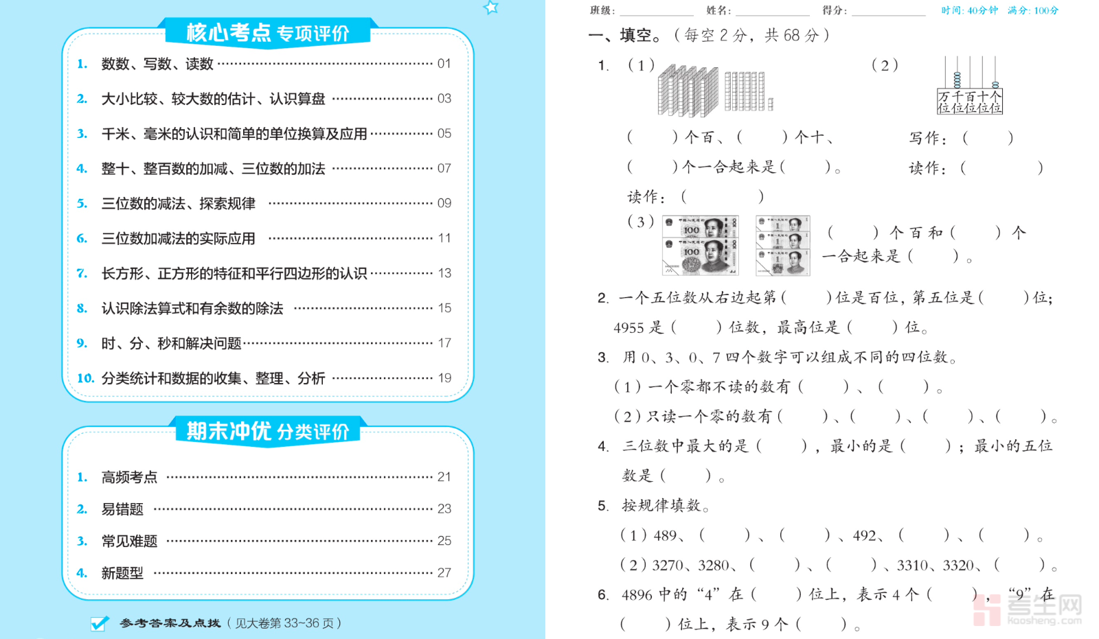 小学数学试卷《好卷专项》(西师版)(二年级下)紧扣西师版二年级下册数学教材与考试大纲,聚焦万以内数的认识、三位数加减法、有余数的除法、长度单位、认识图形、时分秒等核心考点,按专项分类集训,题型全面、梯度合理,注重基础计算、概念理解、应用题解题、易错点突破,精准贴合课堂教学与考试要求。试卷针对性强,助力学生专项夯实基础、查漏补缺,快速提升计算能力与数学思维。每道题目配套详细答案解析,方便学生自主订正、高效提升,适合二年级学生同步练习、单元巩固、期中期末复习、考前冲刺使用。请添加微信 18617049513 进专属群,获取更多免费资源!