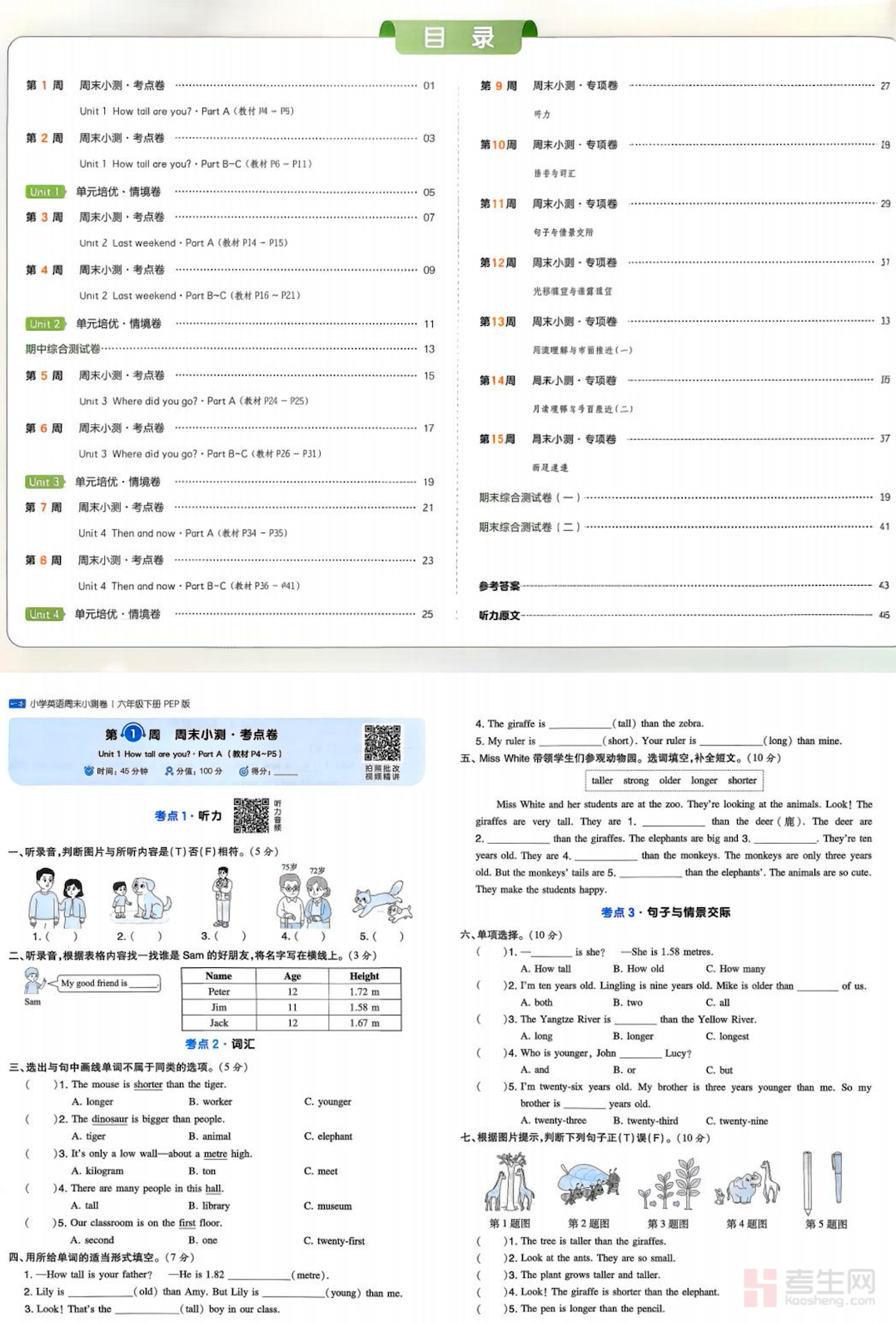 26 春 小学英语 一本周末小测卷(人教 PEP 版)(六年级下)紧扣 2026 年春季人教 PEP 版六年级下册英语教材与新课标要求,贴合周末轻量化检测需求,采用一周一测的科学模式,精准覆盖一般过去时、形容词比较级、一般将来时、核心词汇短语、情景交际等全册核心考点,同步课本单元进度。试卷精选基础题、易错题、真题变式题,题型涵盖单选、句型转换、完形填空、阅读理解、书面表达等常考题型,难度循序渐进,重点强化基础巩固、查漏补缺、答题规范、应试技巧,每卷配套详细解析,方便学生自主订正、高效提升。适合六年级学生周末自测、同步巩固、单元复习、小升初衔接备考使用,助力扎实掌握课内知识,稳步提升英语应试能力。请添加微信 18617049513 进专属群,获取更多免费资源!