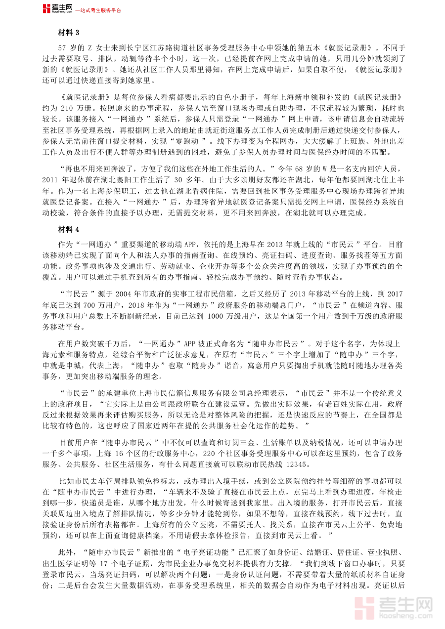这份资料主要用于考生了解上海公务员考试申论B类的命题规律、题型设置及答题标准,帮助考生熟悉考试的整体框架与评分规则,为备考过程中的自我检测和针对性提升提供可靠依据。同时,该资料也可作为辅导机构或教师开展教学指导时的参考工具,辅助制定科学的备考计划和精准的讲解策略,提升教学效果与考生的备考效率。