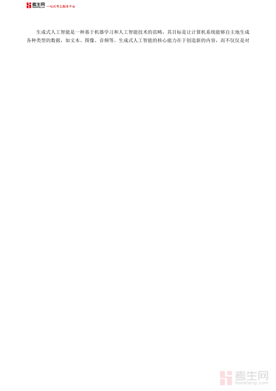 考生网是一站式考生服务平台,拥有唯一“考生”通用词拼音kaosheng.com,自带流量与护城河优势。平台始终坚守发展普惠教育、促进教育公平的初心使命,致力于为广大考生打造一个共创共享的优质知识分享平台。通过整合各类精准匹配不同考试需求的备考资源,考生网为各类考生提供全方位、专业化的服务支持,助力他们在备考道路上高效前行并取得理想成绩。