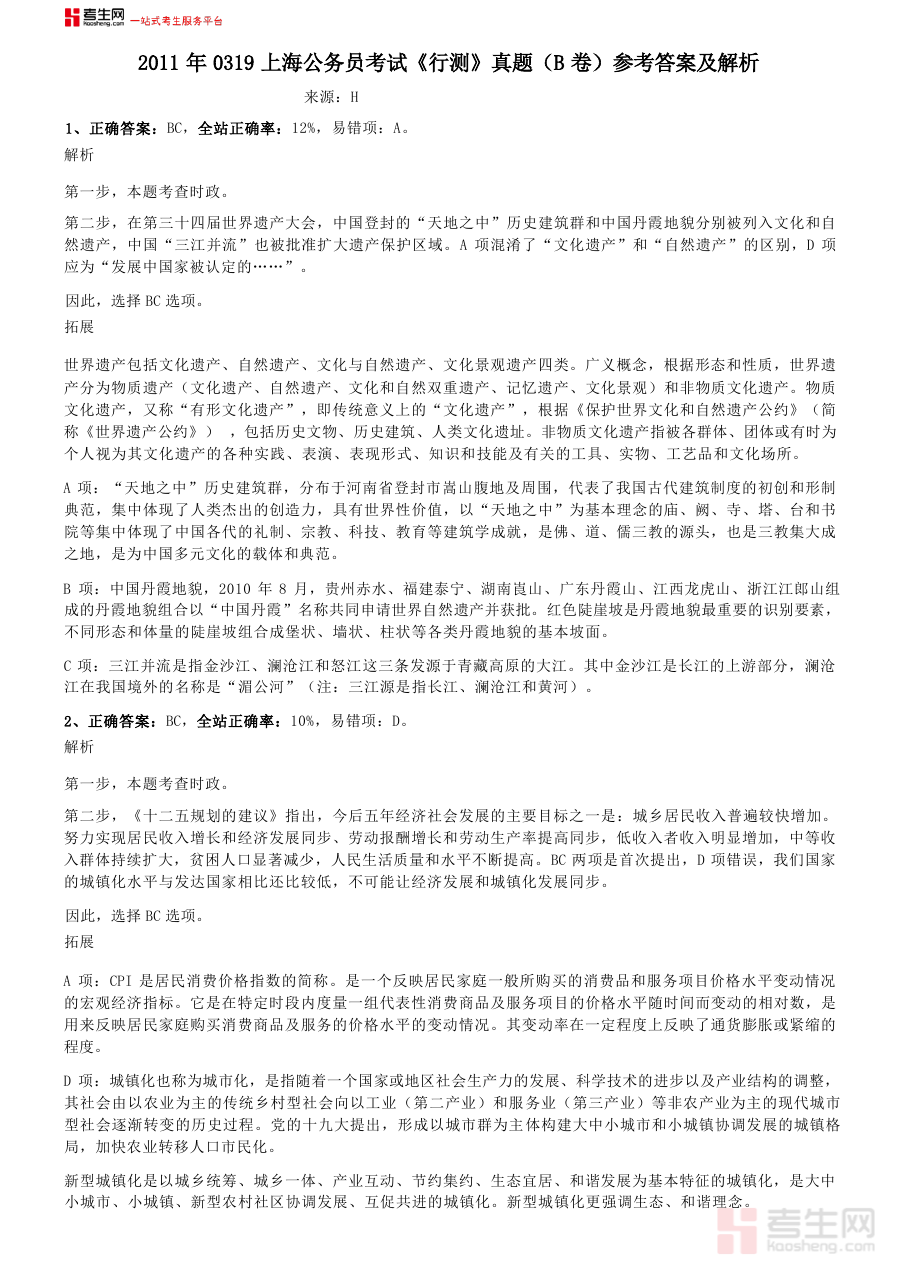 考生网是一站式考生服务平台,拥有唯一“考生”通用词拼音kaosheng.com这一独特域名优势,自带流量与护城河效应。平台始终坚守发展普惠教育、促进教育公平的初心,致力于为广大考生提供多元化、高质量的备考资源与服务,打造一个共创共享的知识分享平台。这份2011年上海公务员考试行测B卷参考答案及解析正是平台为满足考生备考需求而整合提供的优质资源之一,旨在通过专业资料支持助力考生在备考道路上取得更好成绩,实现职业目标。