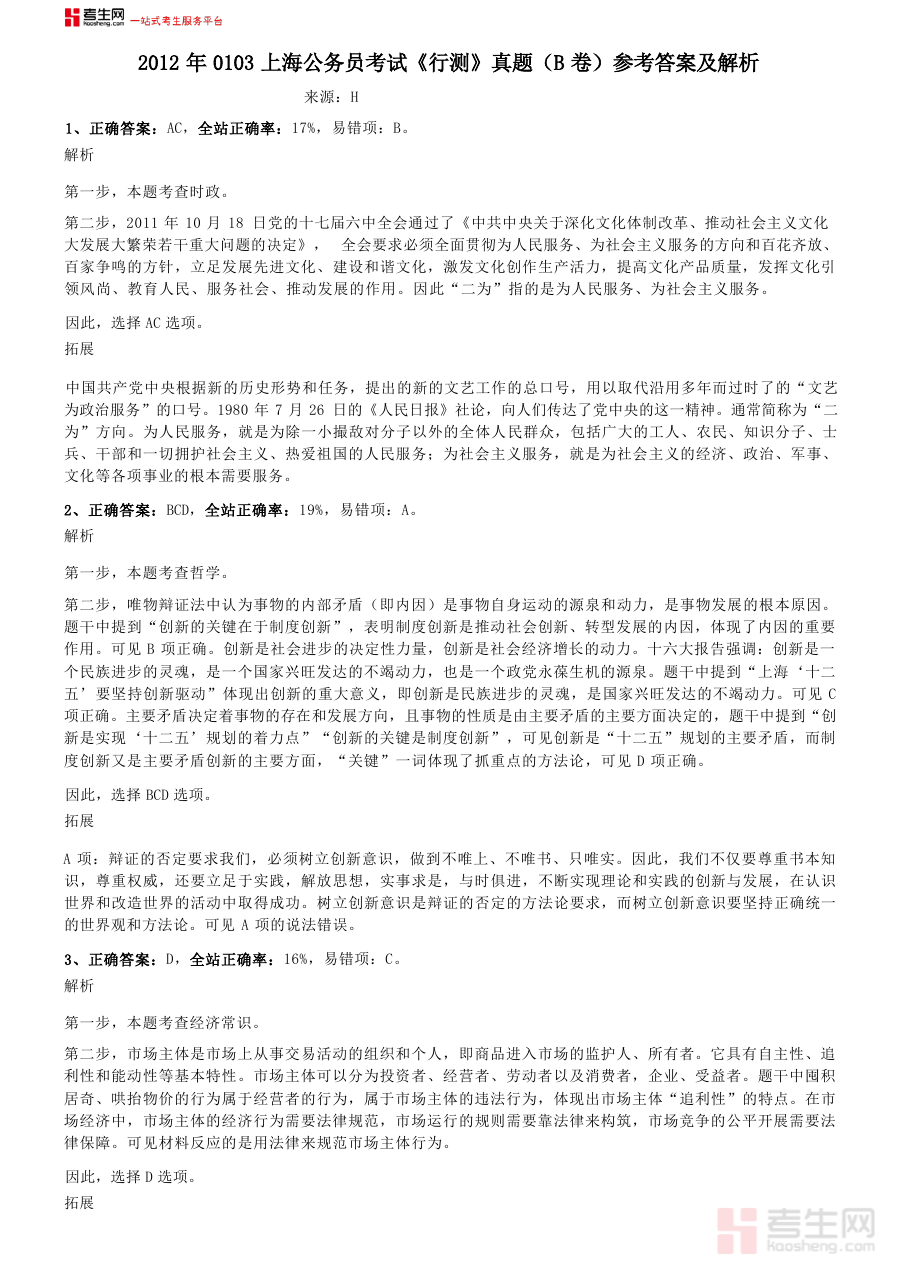考生网是一站式考生服务平台,拥有唯一“考生”通用词拼音kaosheng.com,自带流量,自带护城河,坚守发展普惠教育,促进教育公平初心,打造共创知识分享平台。该平台致力于为各类考生提供多样化的备考资源与服务,此次呈现的这份资料正是平台为满足上海公务员考试考生需求而提供的优质内容之一,助力考生在备考路上获得专业且可靠的支持。