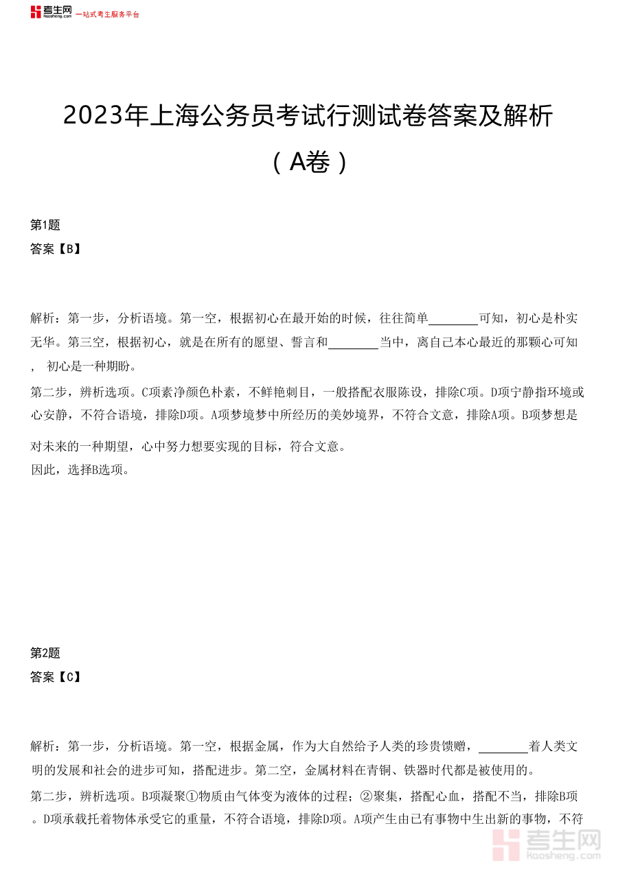 《2023年上海公务员考试行测试卷(A卷)答案及解析》是一份针对2023年度上海市公务员录用考试行政职业能力测验A卷的配套备考资料。它旨在为参与该次考试的考生提供准确的答案参考与专业的解析内容,帮助考生了解试卷作答的正确方向及自身答题情况,是上海公务员考试备考过程中重要的辅助材料之一。