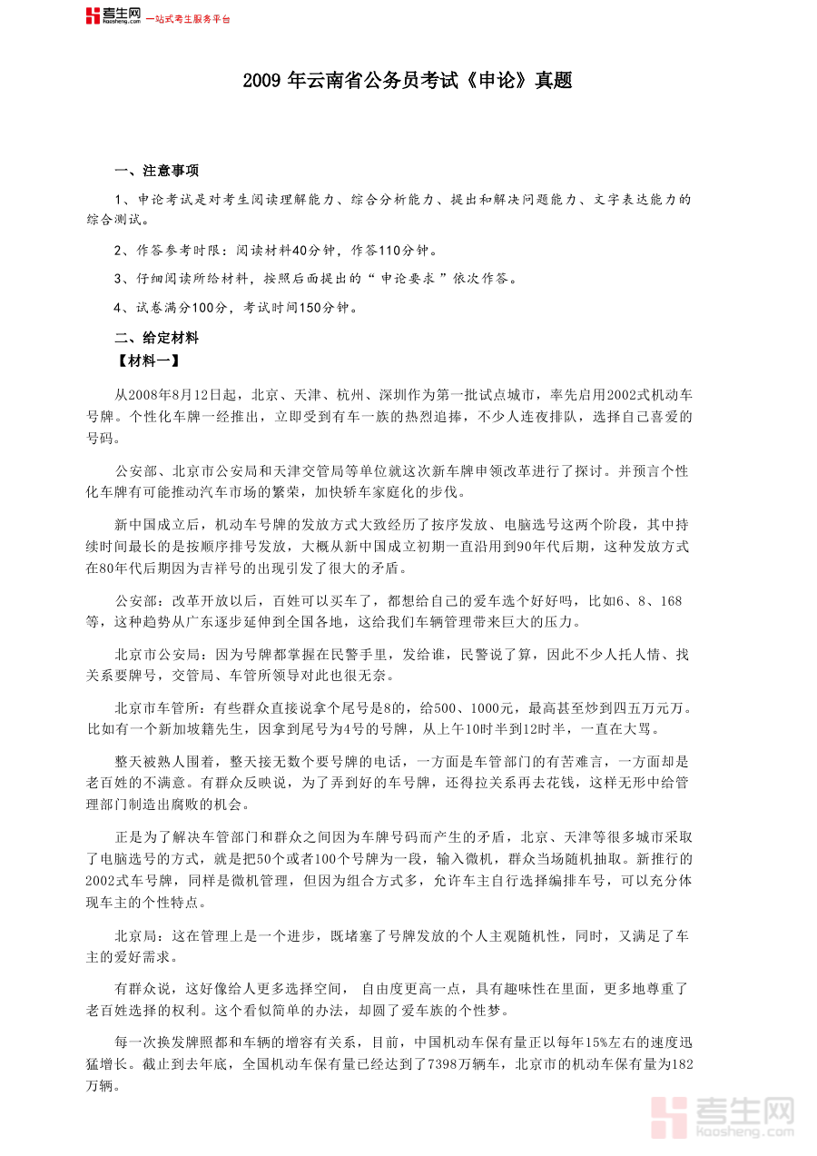 这份资料的核心用途在于为准备参加云南省公务员考试的群体提供真题训练与答题参考依据通过使用该资料备考者能够接触到2009年云南省公务员考试申论科目的实际考试内容框架与要求帮助其熟悉考试结构与作答规范为制定科学备考计划提供支撑同时让备考者在练习中适应考试节奏与难度提升备考效率与精准度