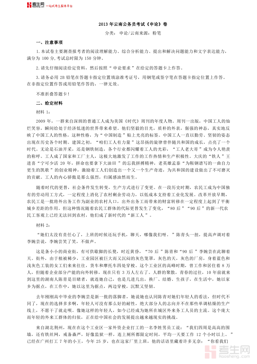 该资料的适用人群主要为计划参加2013年云南省公务员考试的考生群体,包括初次备考的新手以及有一定备考经验的考生。同时,它也适用于从事公务员考试申论科目辅导的教师及培训机构人员,可作为教学参考资料帮助学员理解考试要求与答题规范。对于希望通过真题练习提升申论水平的考生而言,这份资料具有重要参考价值,能够帮助他们更好地适应考试节奏、掌握答题方法,并为后续复习规划提供方向。