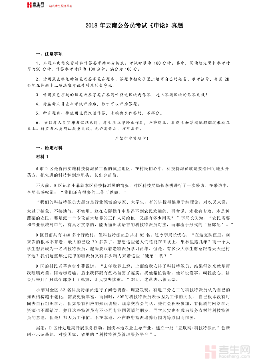 这份资料主要用于备考2018年云南421联考申论科目的考生开展真题演练、自我检测与复习提升,帮助考生熟悉联考申论考试的命题规律与答题规范,明确自身在知识储备、答题逻辑及文字表达等方面的短板;同时,它也可作为公务员考试辅导机构的教学辅助材料,为教师提供真实的考试案例用于课程设计与讲解,助力辅导过程更具针对性与实效性;此外,对于后续年份备考云南公务员联考申论科目的考生而言,这份资料也能帮助其了解联考申论考试的历史趋势与考查重点,为制定科学备考规划提供参考依据。