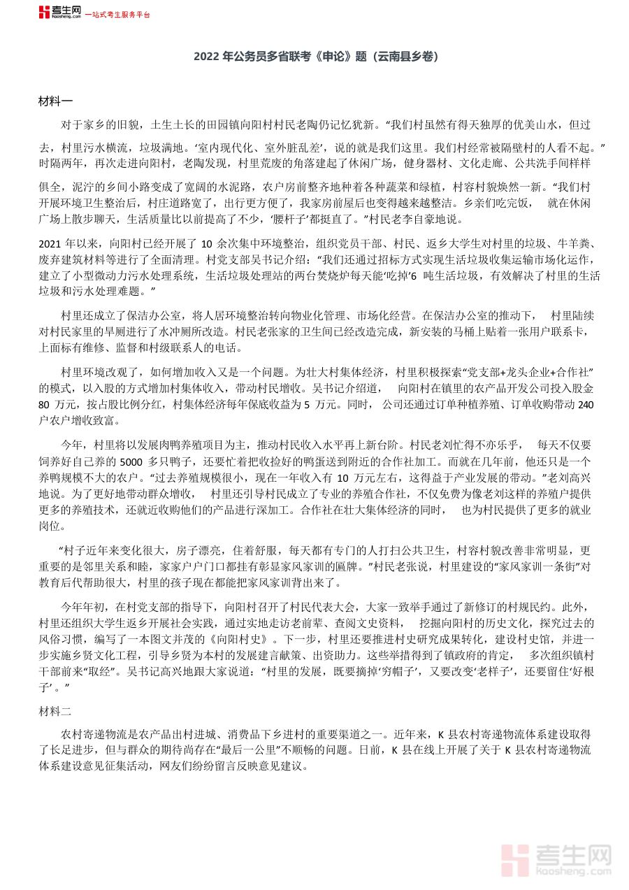 《2022年0709云南公务员考试申论真题及答案(县乡卷)》是一份针对2022年7月9日云南省公务员考试县乡级职位申论科目的官方真题及配套答案资料。该资料精准对应云南地区县乡卷的考试要求,包含了当年公务员考试申论科目县乡层级的完整真题内容与权威参考答案,是了解该次考试申论命题方向和作答标准的重要参考材料,为考生提供了贴近实际考试场景的复习依据,帮助考生快速把握县乡卷申论考试的核心特征与要求。