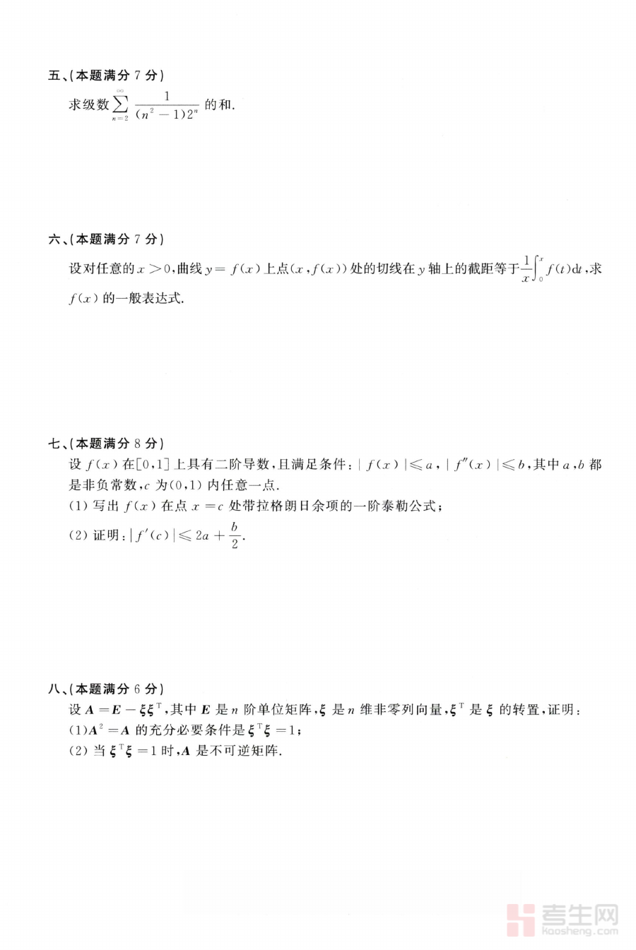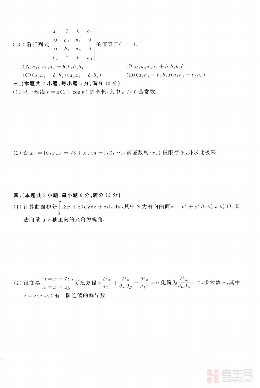 该真题主要适用于计划参加硕士研究生入学考试且选择数学(一)科目的考生,无论是处于基础复习阶段还是强化提升阶段的考生,都能从中获得实际帮助。对于基础阶段考生,它能帮助建立对考研数学(一)考试形式的初步认知;对于强化阶段考生,它可作为阶段检测的重要素材,助力考生在备考规划中精准定位薄弱环节,进而增强复习的针对性与有效性。