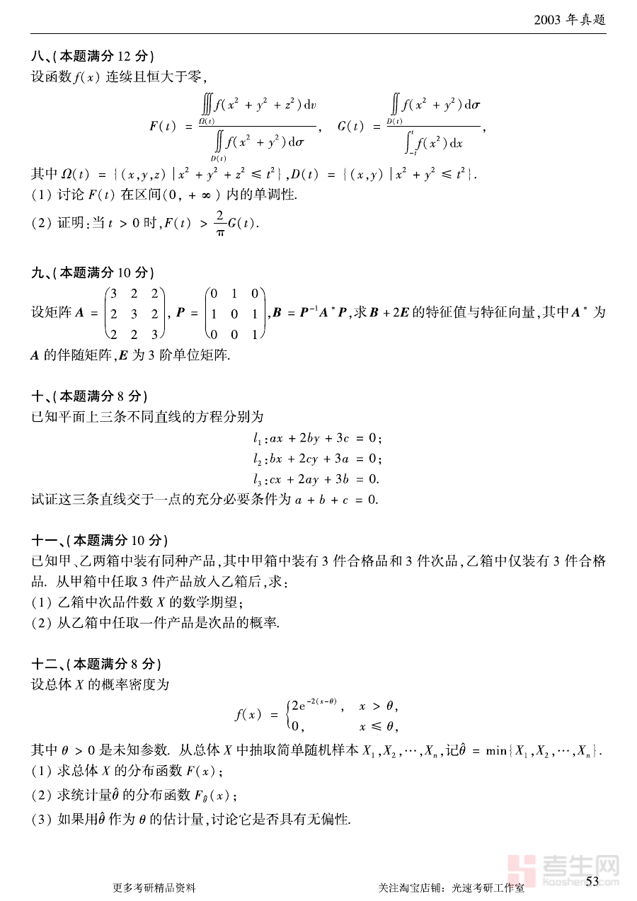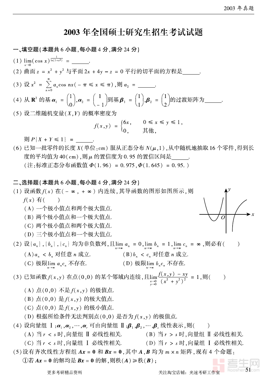 《2003年考研数学(一)真题》是2003年度中国研究生入学考试数学科目(一)的官方考试原题资料,属于研究生入学考试备考领域的关键参考材料。作为历年考研数学真题体系的重要组成部分,它集中反映了该年度考研数学(一)的命题思路与考查方向,为备考者提供了贴近真实考试场景的学习载体。