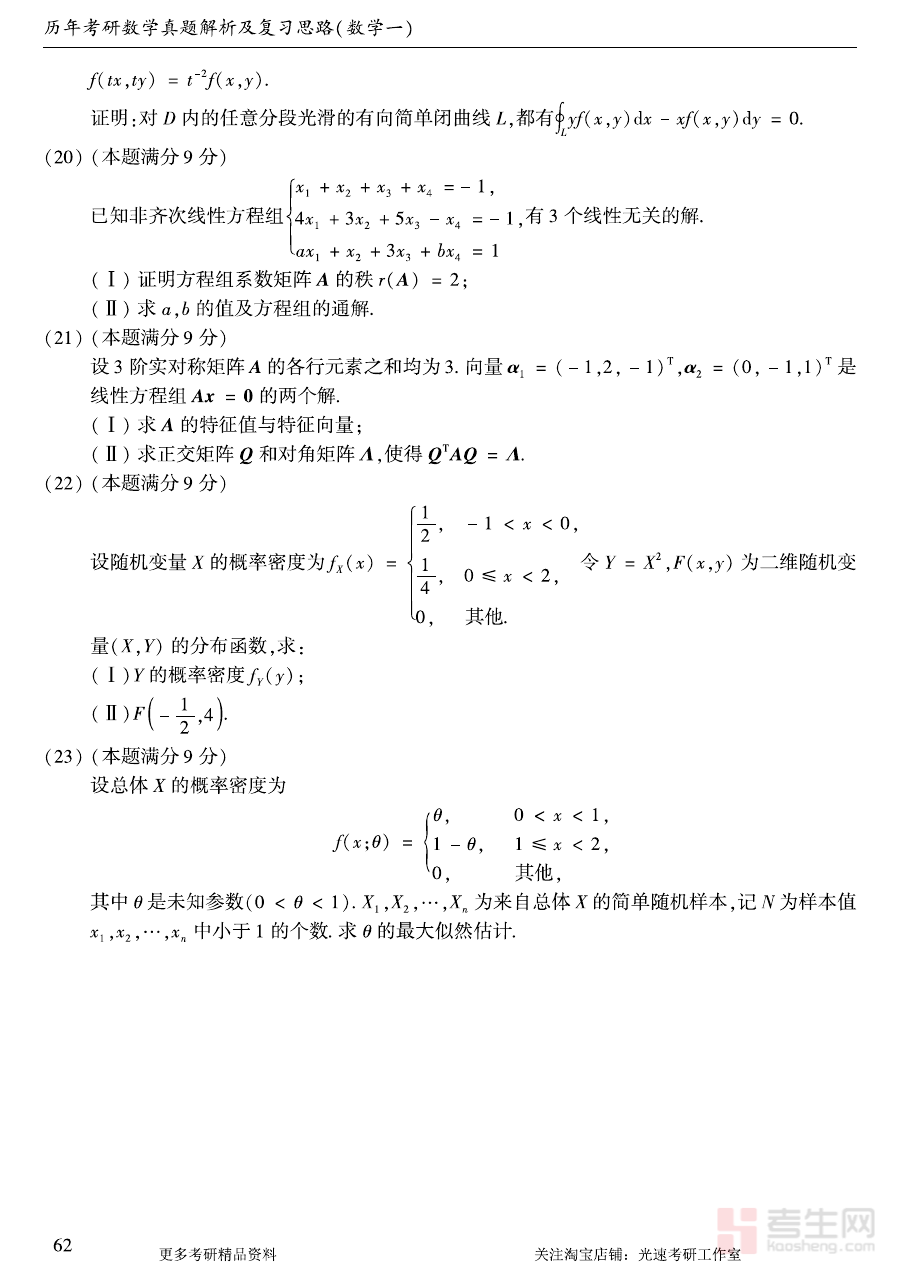 本资料主要适用于准备参加硕士研究生招生考试且选考数学(一)科目的考生,通过对该真题的系统练习与深度分析,考生可更准确地把握考试规律与命题特点,提升备考针对性与效率,对优化备考规划和强化阶段检测质量具有关键指导作用。