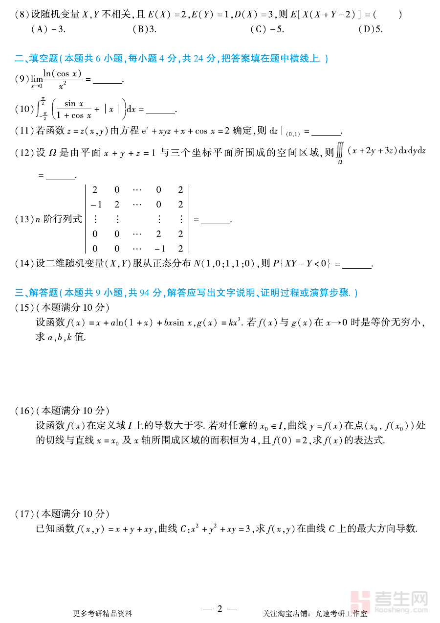 该真题适用于所有准备参加全国硕士研究生招生考试且选择数学一作为考试科目的考生,无论处于基础复习阶段还是冲刺备考阶段均能发挥价值;基础阶段使用可巩固核心知识点并熟悉考试形式,冲刺阶段使用则能模拟真实考试场景、提升应试技巧;通过深入研究与练习该真题,考生可更有针对性地开展复习工作,有效提升应对考试的综合能力与信心。