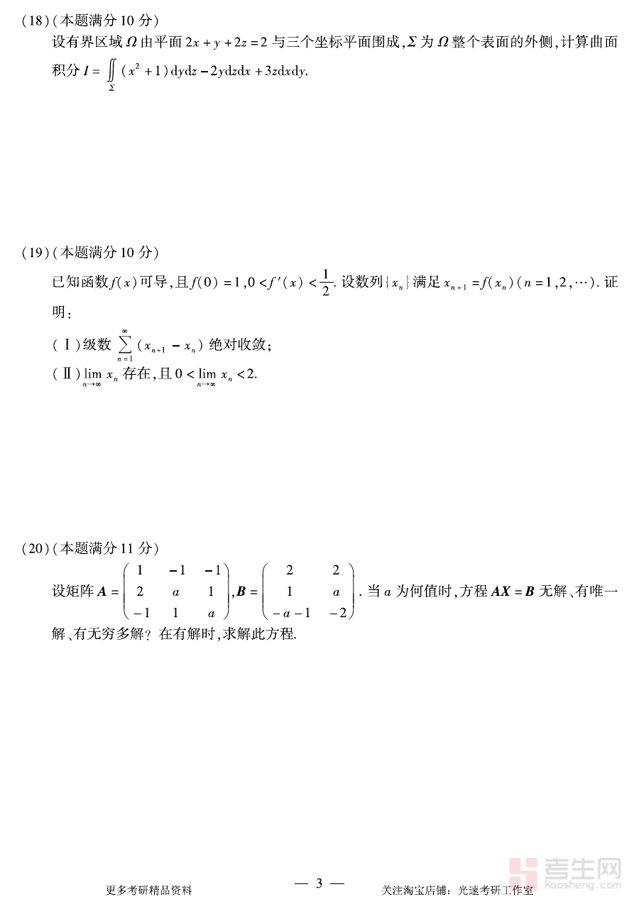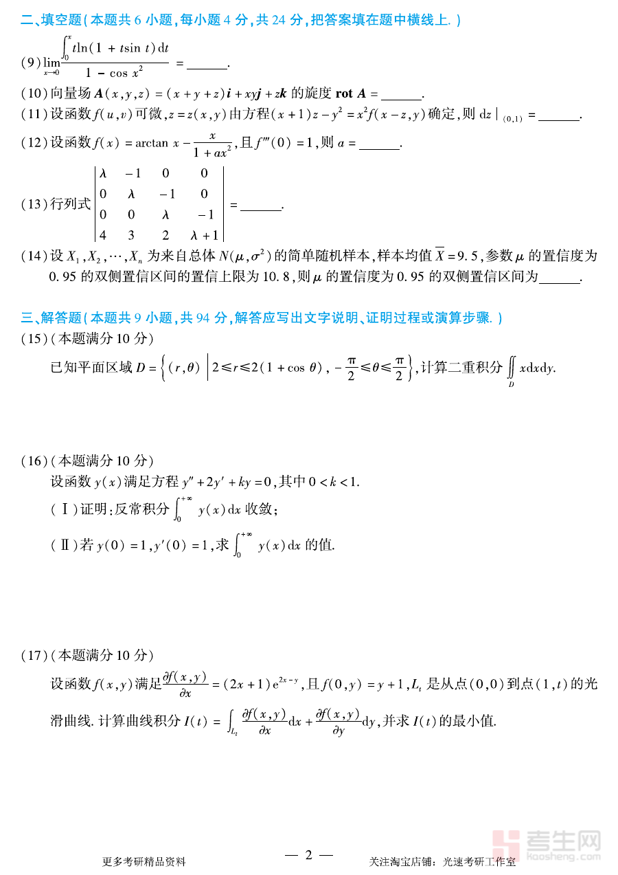 该真题资料可用于考生对自身数学知识体系的掌握情况进行全面诊断,帮助考生精准定位知识薄弱环节,为制定个性化的备考规划提供数据支持;同时,它也可作为阶段复习效果的检测工具,助力考生及时发现复习中的问题并调整策略。