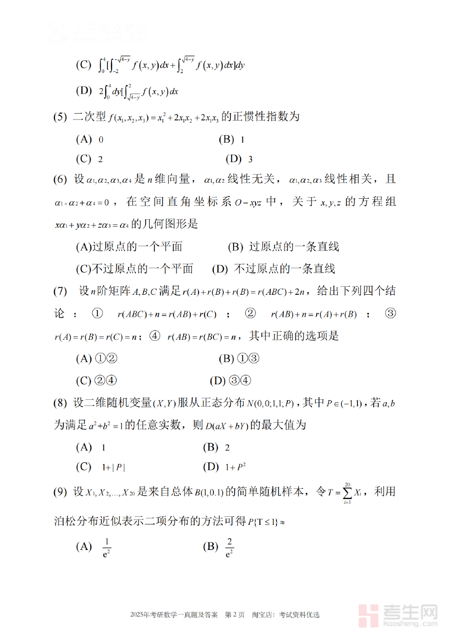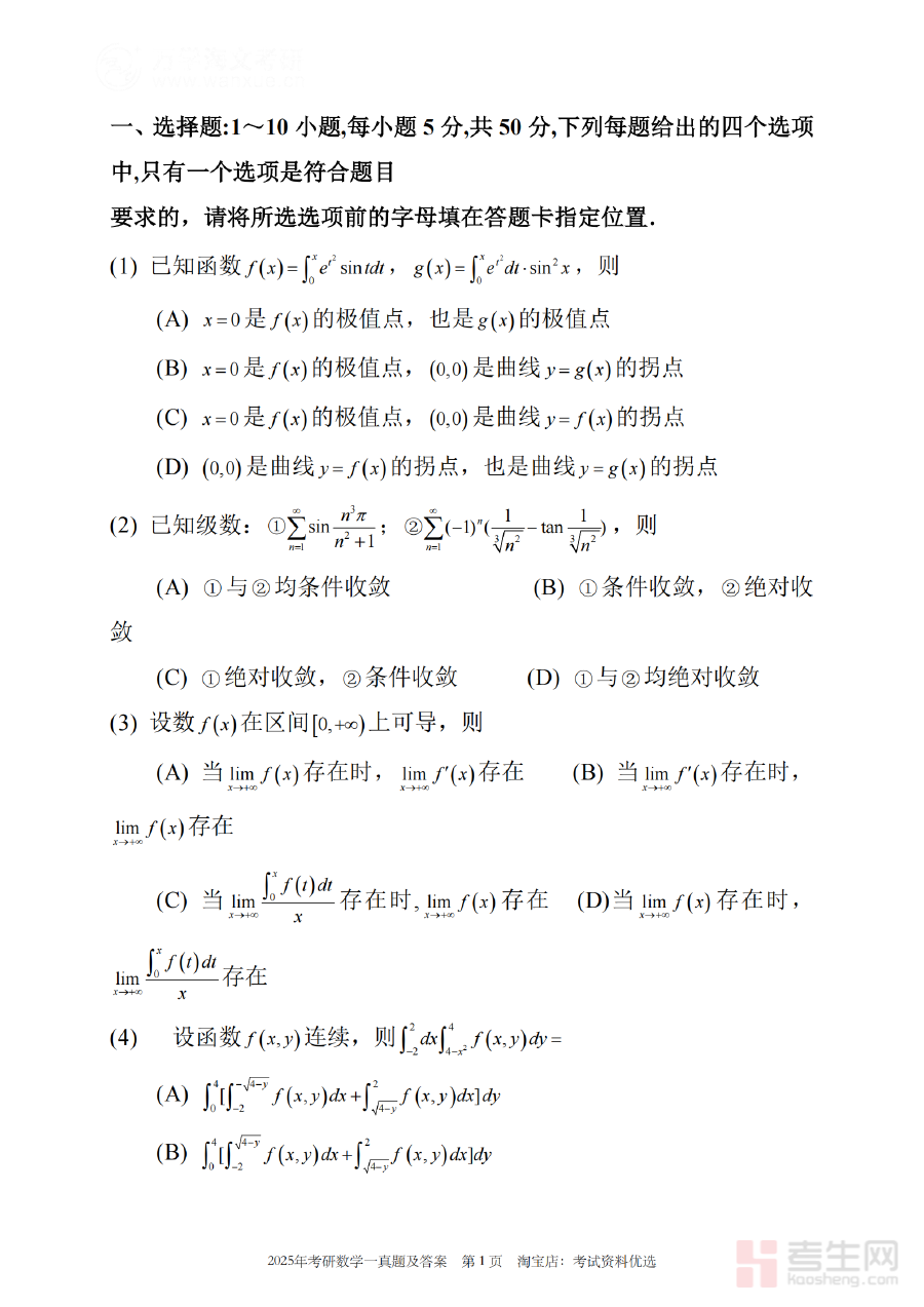 本资料主要适用于计划参加2025年全国硕士研究生招生考试、且报考专业要求考查数学(一)科目的考生。通过使用该真题进行阶段检测与备考规划,考生能够更精准把握考试节奏、熟悉考试流程,进而提升备考效率与应试信心,为顺利通过考试奠定基础。