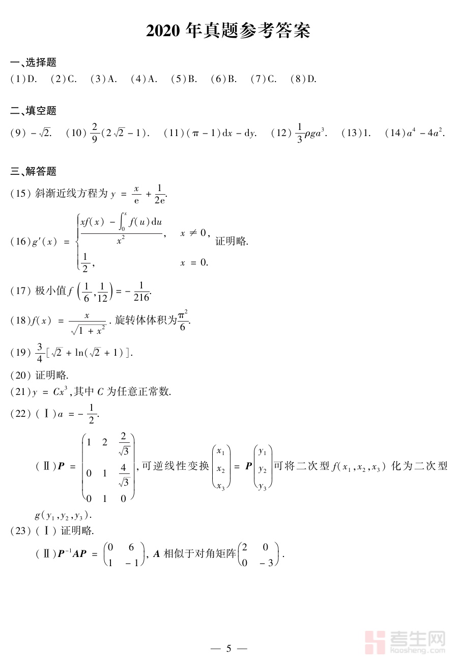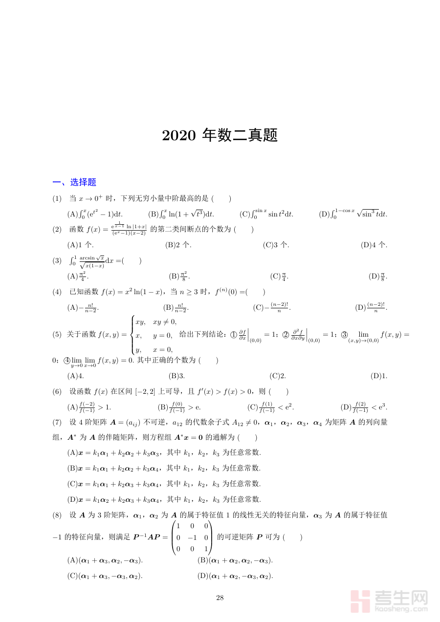《2020考研数学二真题》是一份针对2020年全国硕士研究生招生考试数学二科目的官方真题资料,由相关命题机构编制发布,是考研数学二备考阶段的核心参考材料之一。