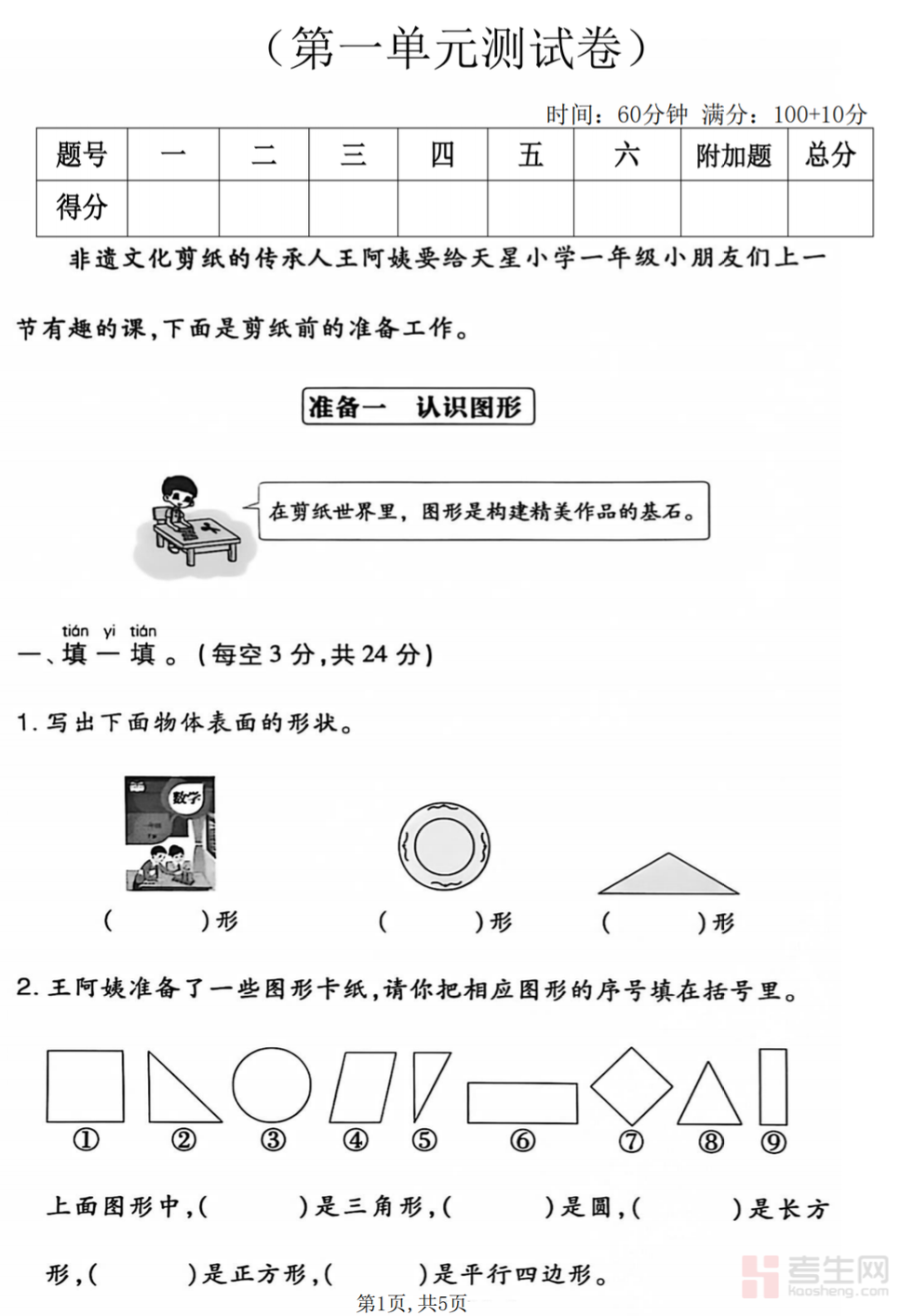 小学数学第一单元拔尖检测卷(人教版)(一年级下)紧扣人教版一年级下册数学第一单元教材内容与新课标要求,围绕认识图形、平面图形辨识、图形拼组、简单分类等核心知识点编写,立足基础、侧重拔高,设计拓展题、变式题、动手操作题,注重考查观察能力、空间感知、逻辑思维。试卷题型简单易懂、难度梯度合理,贴合一年级学生认知特点,配套详细答案与解题提示,方便学生自查自纠。适合一年级学生单元拔高、培优训练、思维启蒙、考前巩固使用,夯实图形认知基础,提升数学学习兴趣与解题能力。请添加微信 18617049513 进专属群,获取更多免费资源!