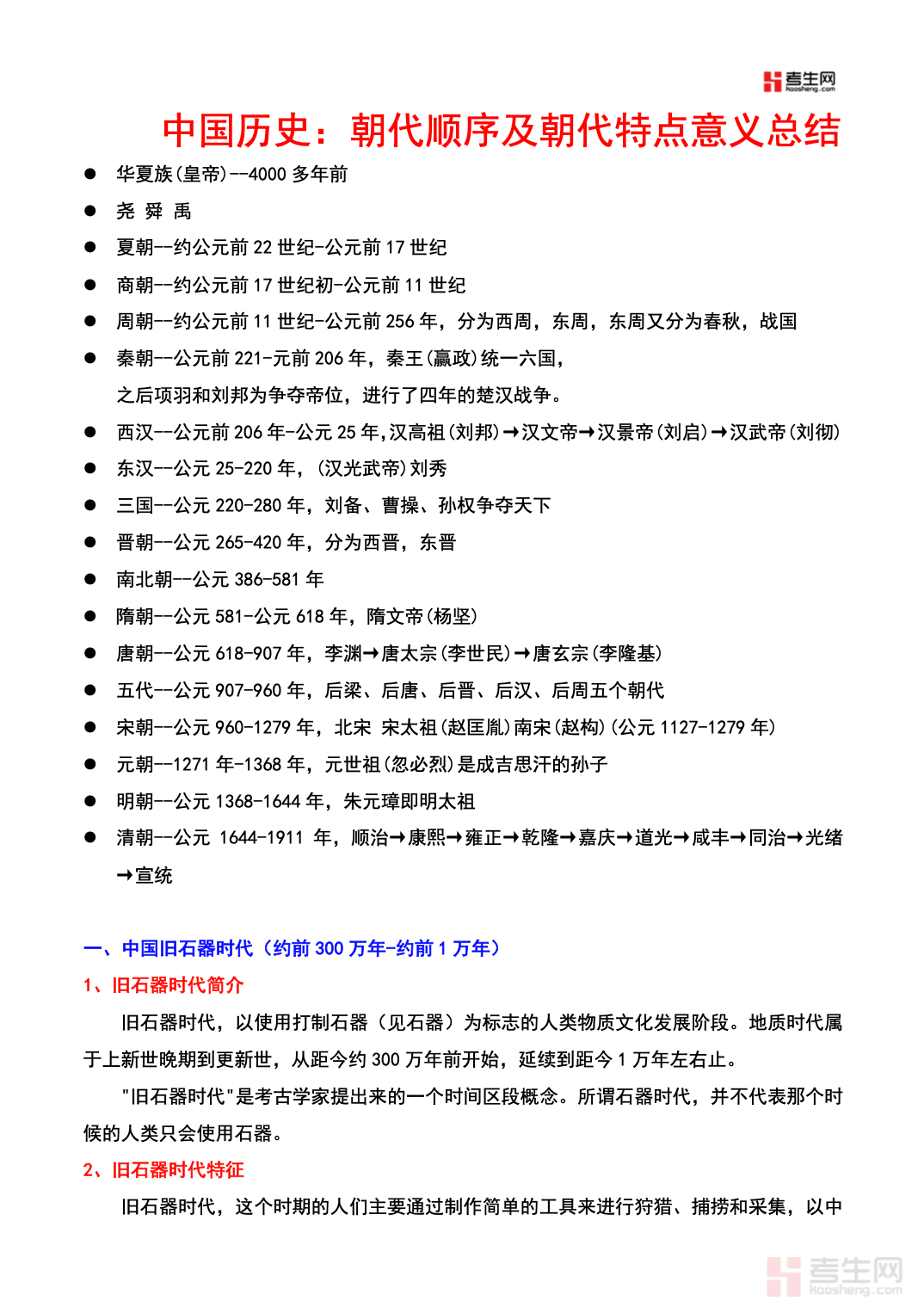 【初中历史】朝代顺序及朝代特点意义总结精准梳理中国古代史完整朝代顺序,涵盖从夏商周到明清的所有核心朝代,搭配简洁好记的朝代顺序梳理,避免记混遗漏。同时详细总结每个朝代的核心特点、政治制度、经济发展、文化成就,以及各朝代的历史意义与影响,紧扣中考考点,贴合初中历史学习需求。内容条理清晰、重点突出,将朝代顺序与历史特点、意义深度结合,帮助学生理清历史脉络,解决朝代混淆、特点记不全、意义答不准的问题。适合初中学生同步学习、单元复习、考前背诵、查漏补缺使用,夯实中国古代史基础,提升历史知识运用能力。请添加微信 18617049513 进专属群,获取更多免费资源!