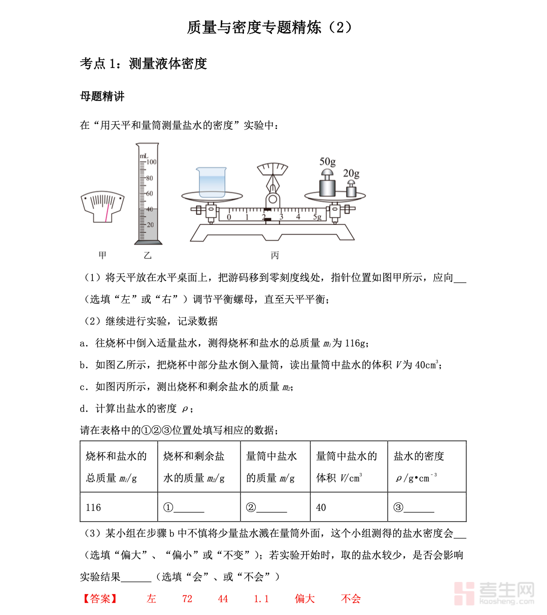 初三物理质量与密度专题精炼紧扣初三物理中考核心考点,聚焦质量的测量、密度的计算、实验探究、图像分析、综合应用题等重点内容,精选基础题、易错题、中考真题、压轴题型,由浅入深梯度训练,帮助学生扎实掌握密度公式应用、实验操作规范、误差分析、单位换算等关键能力。每道题均配有详细解析,点明思路、归纳模型、总结技巧,专为初三学生专项突破、查漏补缺、中考冲刺打造,快速提升物理解题能力与应试水平,夯实力学基础,轻松应对考试。请添加微信 18617049513 进专属群,获取更多免费资源!