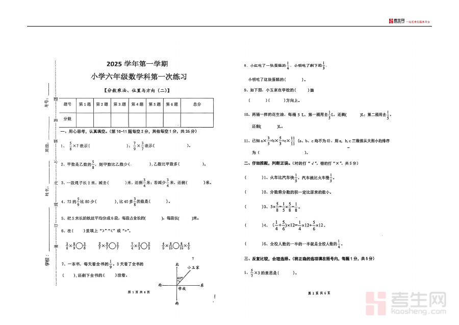 本资料适用于广州市海珠区新港中路小学等校的六年级学生、数学教师及学生家长,通过开学阶段的检测与练习,能帮助学生快速进入新学期学习状态,教师可依据试题结果优化教学策略,家长则能更好地了解孩子的数学学习基础,共同助力学生的数学学习提升。