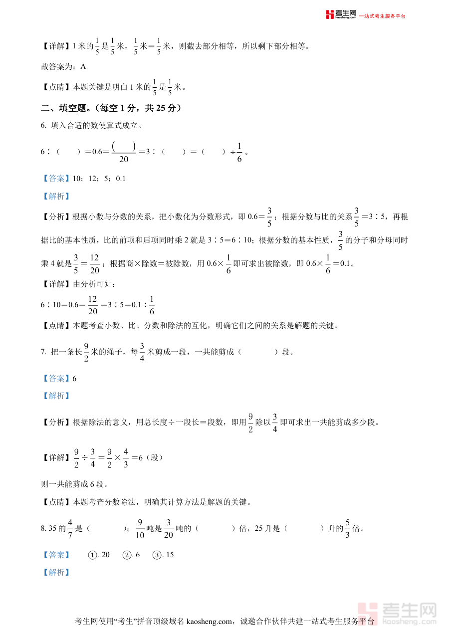该资料适用于2022-2023学年广东省广州市白云区白云小学六年级的学生,也可作为数学教师开展教学评估或家长辅助孩子学习的参考工具,其解析内容能有效支持阶段检测的结果分析与备考规划的优化,具有较高的实用价值。