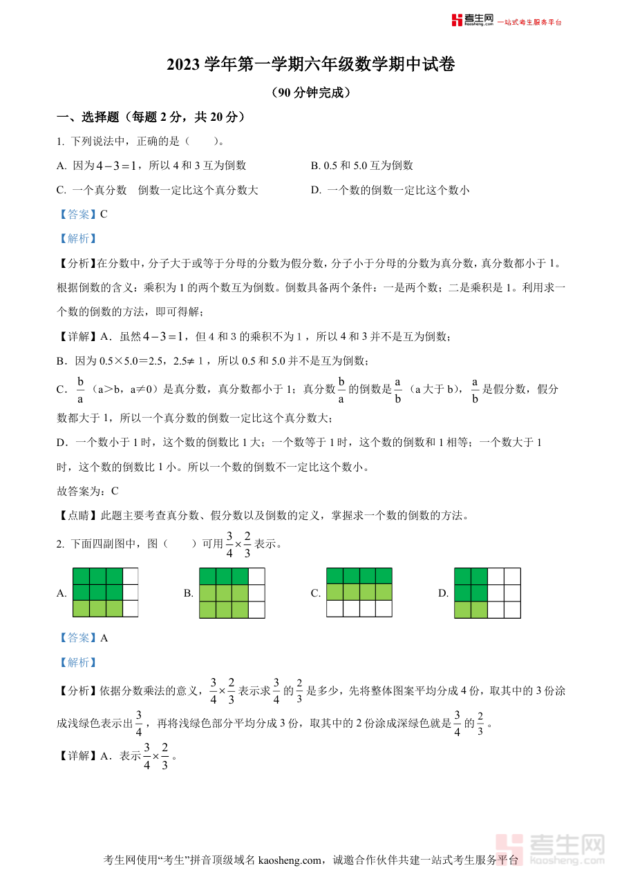 本资料适用于2023-2024学年广东省广州市海珠区参与此次期中联考的六年级学生、相关学科教师及学生家长,通过解析内容可帮助学生巩固知识体系、提升应试能力,协助教师和家长了解考试方向与学生学习状况,具有显著的阶段检测与备考规划价值。