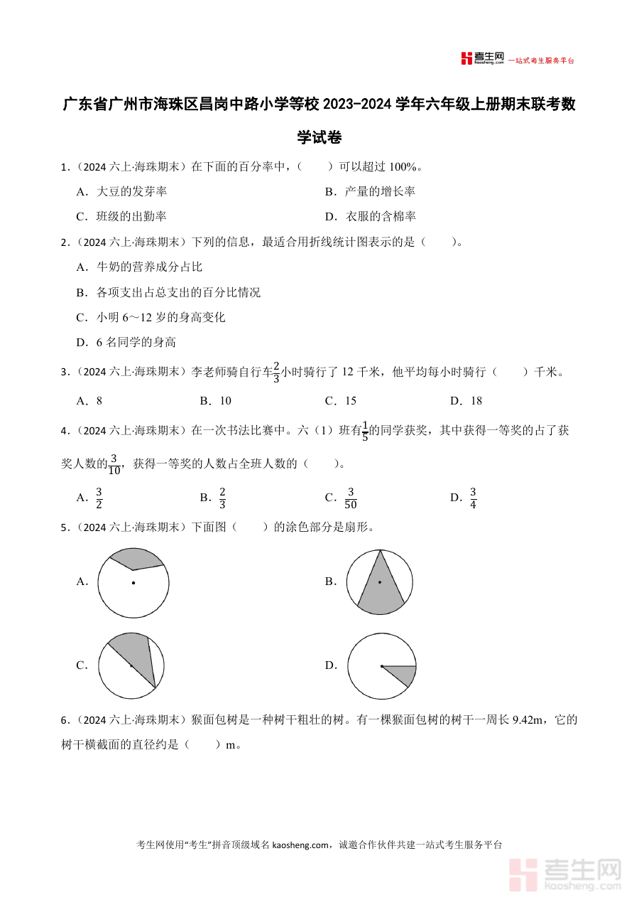 此试卷(学生版)主要面向广州市海珠区昌岗中路小学及参与本次联考的其他学校六年级学生使用,也可供相关教师参考;学生通过使用该资料可提前适应联考考查形式与节奏,教师则能借助其了解联考命题方向,从而更精准地指导学生备考。