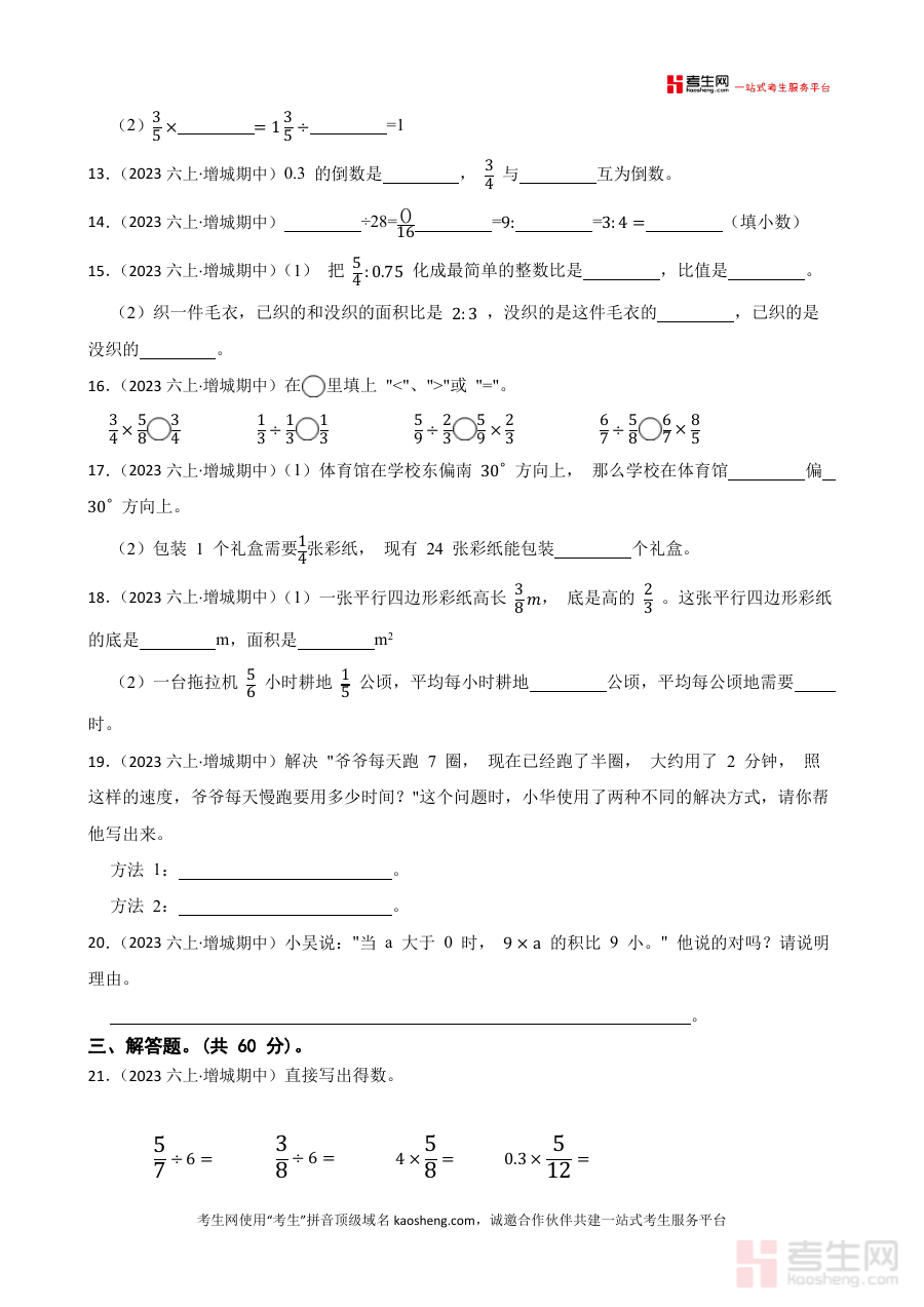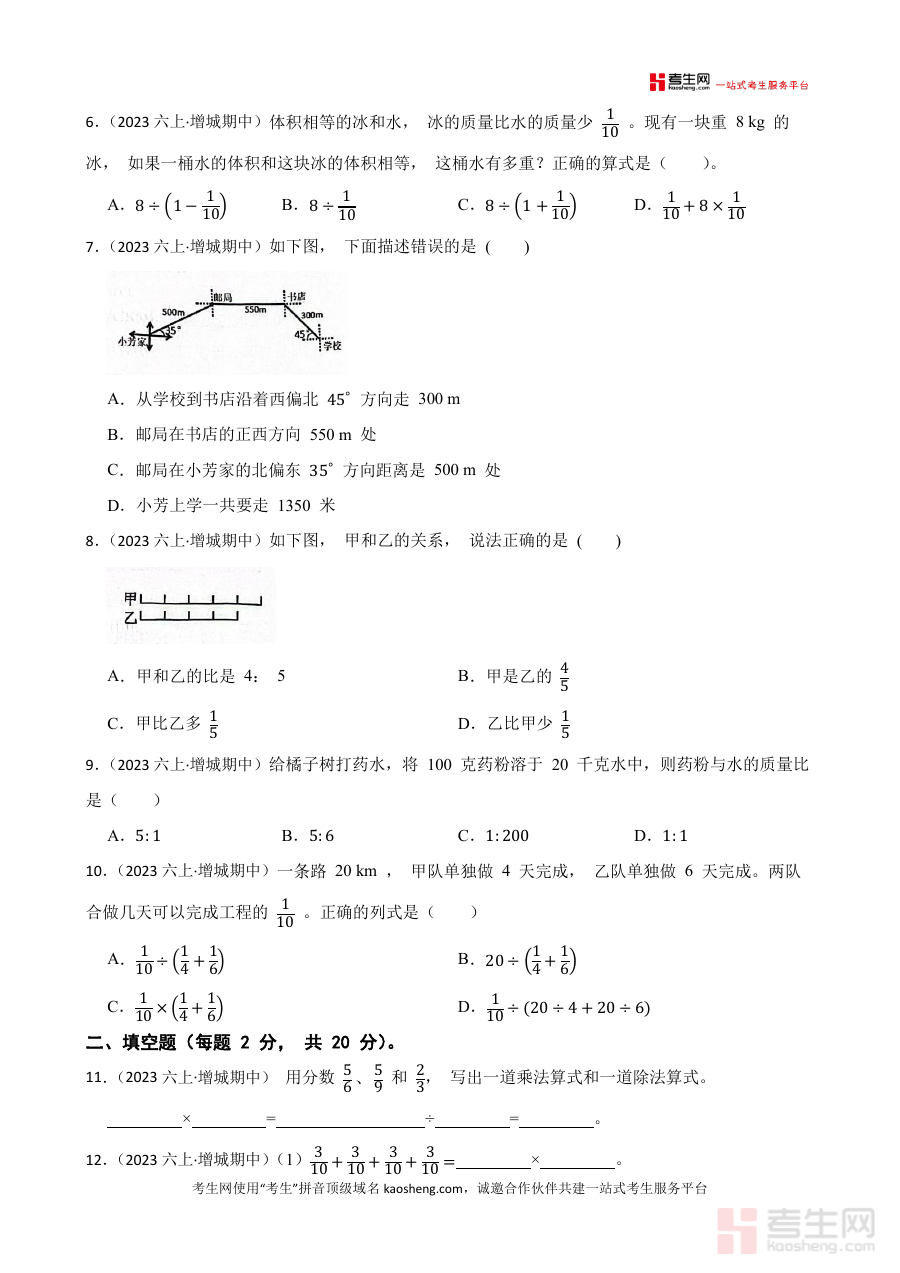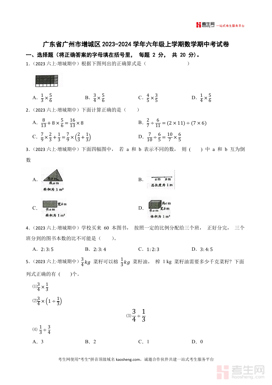 《广东省广州市增城区2023-2024学年六年级上学期数学期中考试卷(学生版)》是2023-2024学年广东省广州市增城区针对六年级上学期数学学科的期中考试相关资料,作为该阶段数学期中考试的备考资料,能够帮助使用者了解该地区该学年六年级上学期数学期中考试的考查方向与整体要求,为后续的复习与备考提供明确的参考依据,助力使用者提前适应考试形式与节奏。