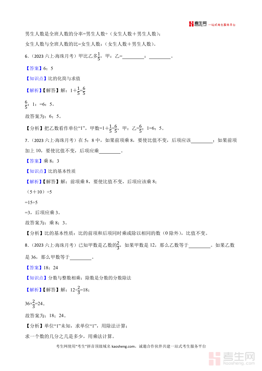 该资料主要适用于广东省广州市海珠区新港路小学的六年级数学教师群体,也可为区域内同类学校的数学教学工作提供参考。其作为第二次月考试卷的教师版,在阶段检测中能够帮助教师高效评估教学效果,在备考规划方面则能辅助教师明确后续教学重点,对提升教学质量与学生学习效率具有积极的推动作用。