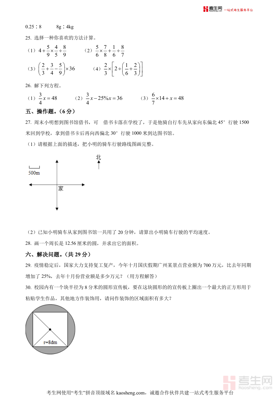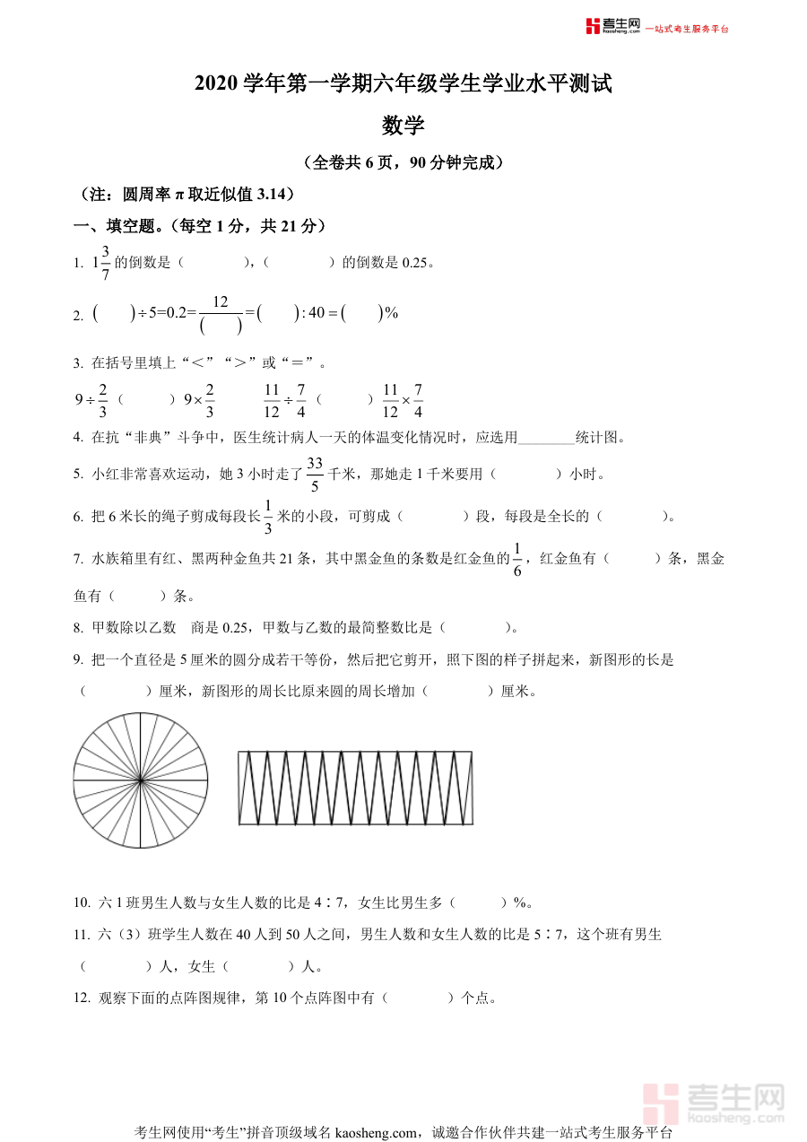 《精品解析:2020-2021学年广东省广州市南沙区人教版六年级上册期末测试数学试卷(原卷版)》是2020至2021学年广东省广州市南沙区区域内,采用人教版教材的六年级学生期末测试数学科目的原卷资料,属于该阶段数学学科期末备考的核心参考素材。