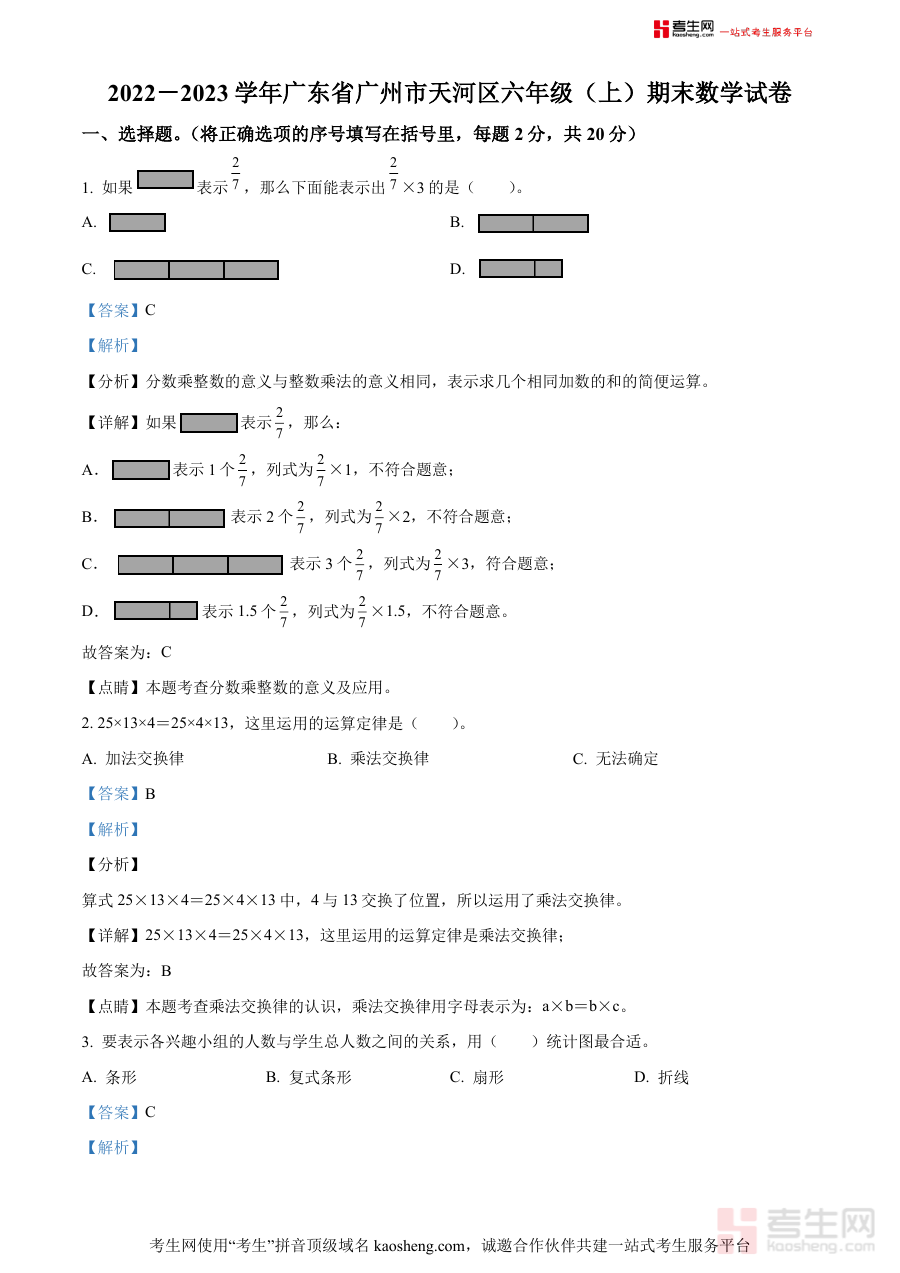 《精品解析:2022-2023学年广东省广州市天河区人教版六年级上册期末测试数学试卷(解析版)》是针对2022至2023学年广东省广州市天河区区域内使用人教版小学数学六年级上册教材的学生所开展的期末数学测试的专业备考资料。该资料精准对应该学年该地区六年级数学期末检测的核心要求,整合了区域考试的关键元信息,为使用者提供与本地期末测试高度匹配的参考内容,助力使用者更好地把握考试方向与核心考查点。