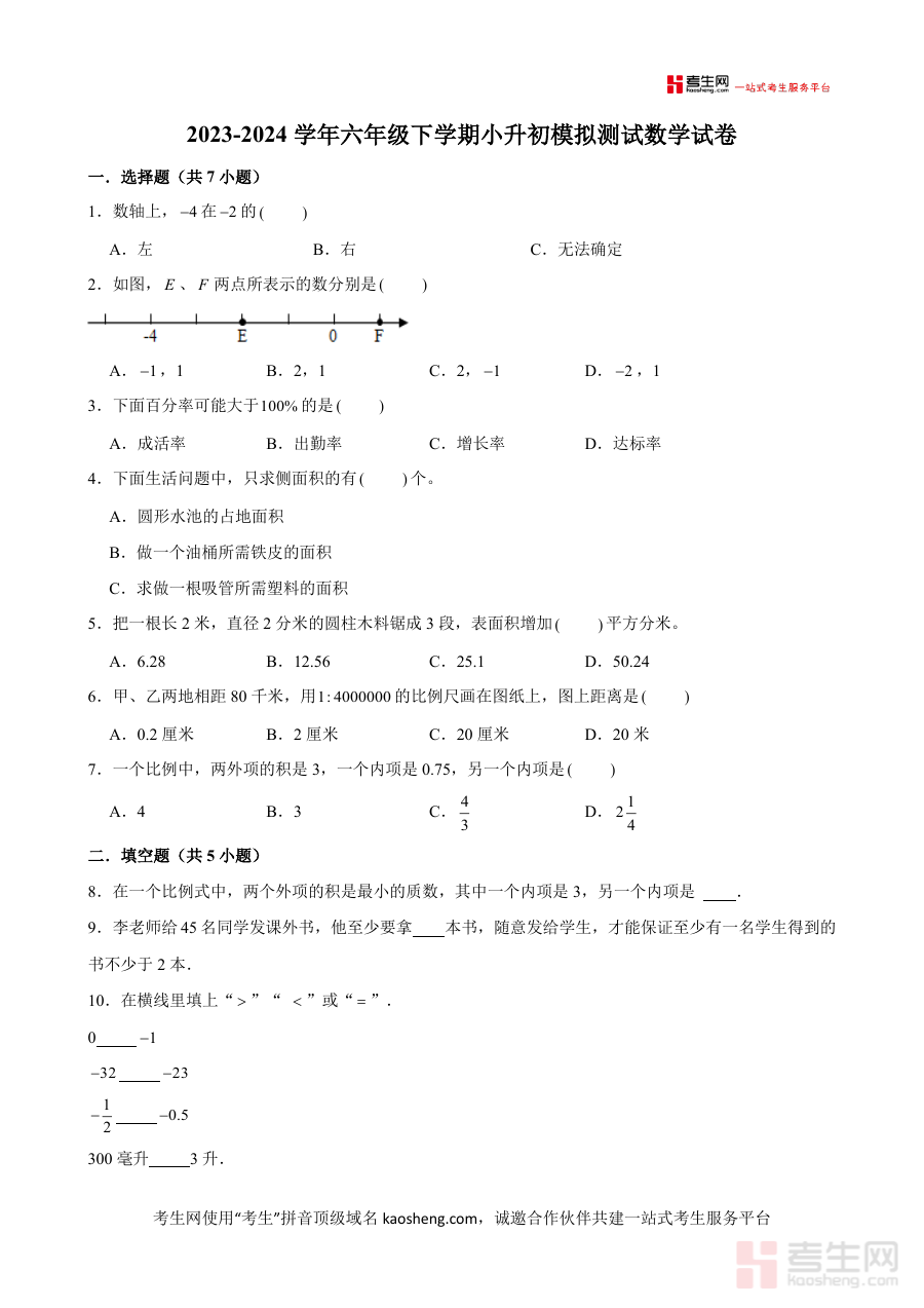 《广东省广州市小升初模拟测试冲刺卷(试题)-2023-2024学年六年级下册数学 人教版》是面向2023-2024学年广东省广州市地区小升初数学考试的专项模拟冲刺备考资料。它以当地小升初考试的命题趋势为导向,结合人教版六年级下册数学教材的核心知识体系,为学生提供了与真实考试场景相契合的训练载体,旨在帮助学生提前适应小升初数学考试的形式与要求,搭建起教材知识与应试能力之间的桥梁。
