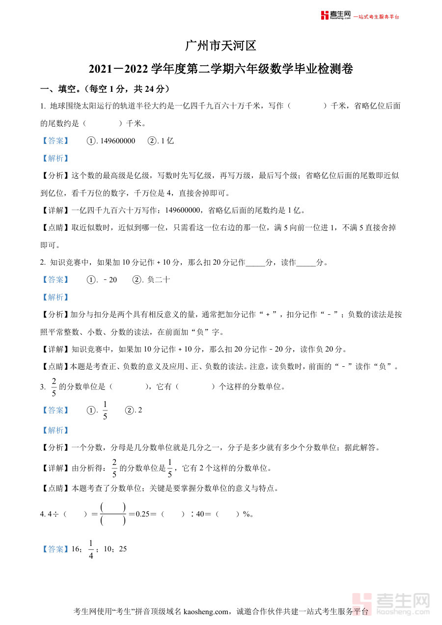 《精品解析:2022年广东省广州市天河区人教版小升初考试数学试卷(解析版)》是针对2022年广东省广州市天河区采用人教版教材的小升初数学考试编制的专业备考资料,明确对应特定年份、区域、教材版本及升学考试阶段,具备较强的针对性和区域适配性,为使用者提供与本地考试直接相关的参考内容。