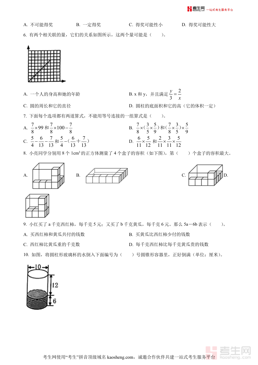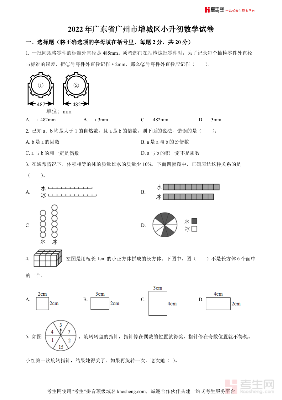 《精品解析:广东省广州市增城区2022年人教版小升初考试数学试卷(原卷版)》是2022年广东省广州市增城区针对小升初阶段数学学科推出的原卷类备考资料,基于人教版教材体系编制,精准对应该区域当年小升初数学考试的命题背景与试卷框架,为使用者提供了贴近真实考试场景的参考载体,能够帮助相关群体快速了解该区域小升初数学考试的基本形式与核心导向,是该阶段数学备考的重要资源之一。