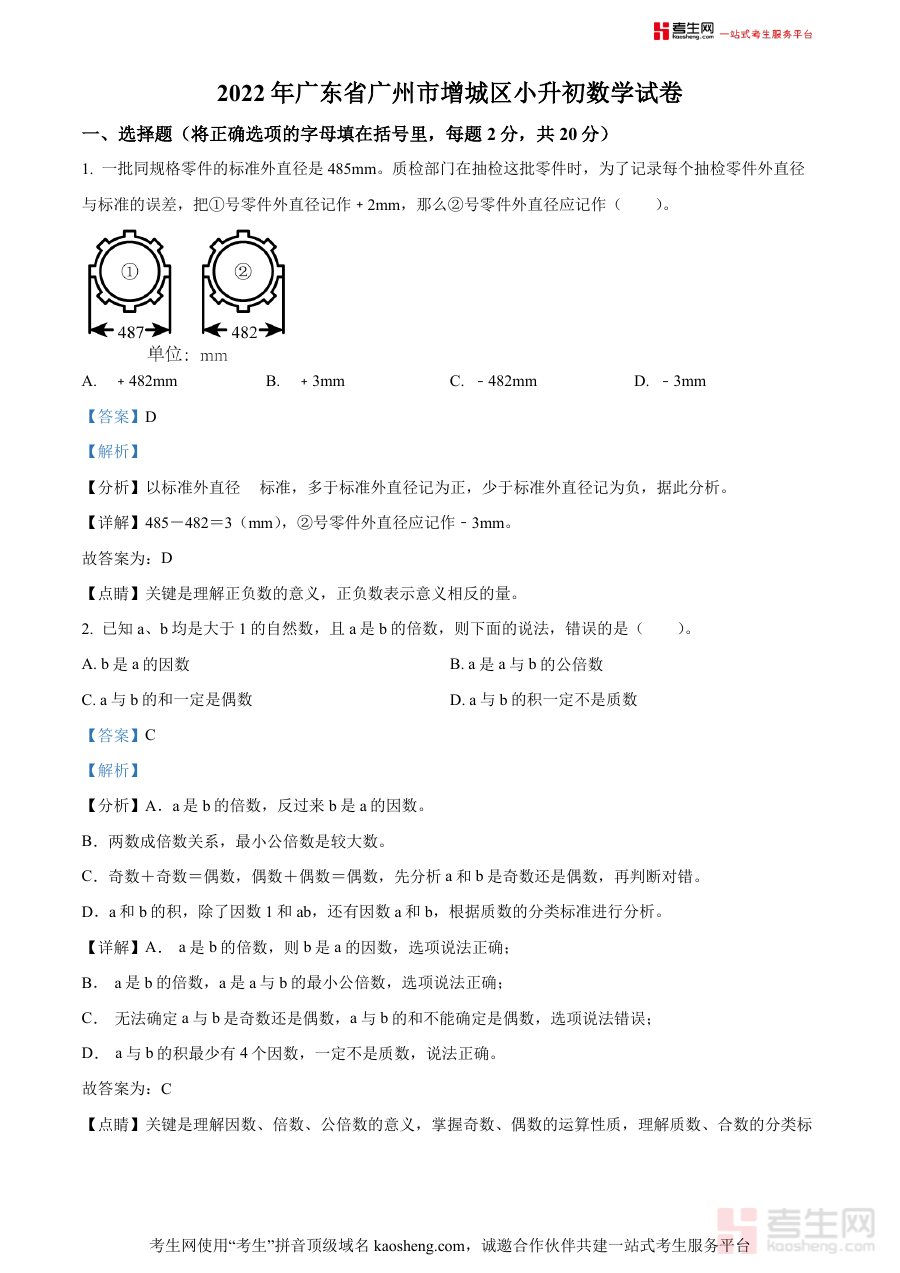 《精品解析:广东省广州市增城区2022年人教版小升初考试数学试卷(解析版)》是针对2022年广东省广州市增城区区域内采用人教版数学教材的小学毕业生打造的小升初考试配套备考资料,精准对应该地区当年小升初数学考试的命题背景与考查方向,为相关主体开展备考活动提供具有区域针对性和年份时效性的参考依据。