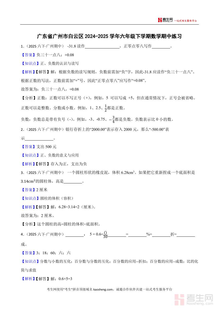 该资料主要适用于广东省广州市白云区的六年级数学教师及该学段的学生群体。对于教师而言,它是开展期中复习指导、学情分析及教学优化的重要工具;对于学生来说,借助教师版资料中蕴含的考查要点与解题思路参考,能更清晰地把握期中练习的核心方向,助力其进行高效的期中备考规划与阶段检测准备,进而提升期中阶段的数学学习效果与应试能力。