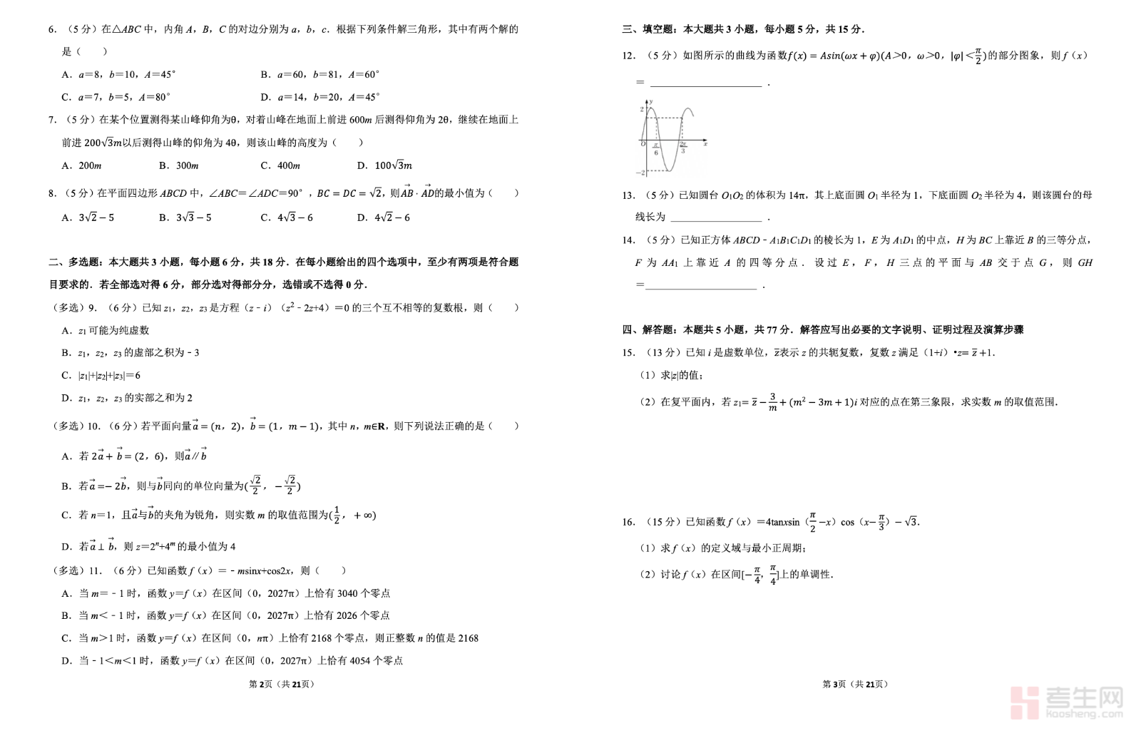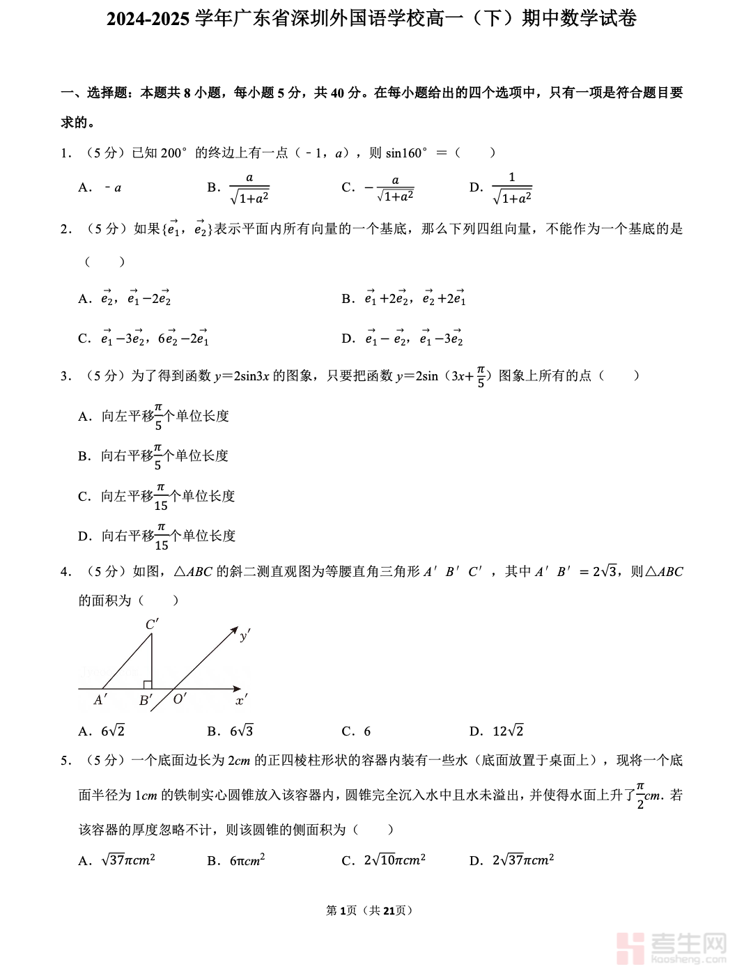 2024-2025 学年广东省深圳外国语学校高一(下)期中数学试卷严格对标该校教学进度与新高考命题方向,全面覆盖平面向量、三角函数、解三角形、复数、空间立体几何核心考点,包含单选、多选、填空、解答完整题型,注重考查逻辑推理、运算求解、空间想象、知识综合应用能力。试卷难度梯度科学,贴合深圳外国语学校校内检测标准,精准还原命题思路与高频考法,配套详细答案解析,逐题点明解题步骤、得分要点与易错陷阱,适合高一学生期中备考、自测定位、专题巩固、查漏补缺,快速夯实数学基础,提升应试能力。请添加微信 18617049513 进专属群,获取更多免费资源!