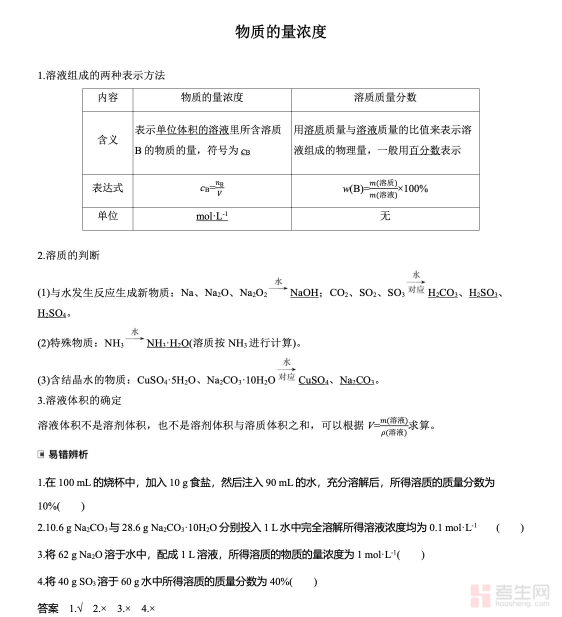 高中化学物质的量浓度专题资料紧扣教材考点与考试要求,系统讲解物质的量浓度概念、相关计算公式、溶液配制实验、稀释定律应用及混合溶液计算等核心内容,重点突破物质的量、质量、体积之间换算、一定物质的量浓度溶液配制步骤与误差分析、化学方程式计算等高频考点,精选典型例题、易错题型和真题变式题,搭配详细解析与解题技巧,帮助学生夯实基础、理清思路、提升解题能力,适合课堂同步学习、单元复习与考前巩固,快速掌握专题核心知识。请添加微信 18617049513 进专属群,获取更多免费资源!